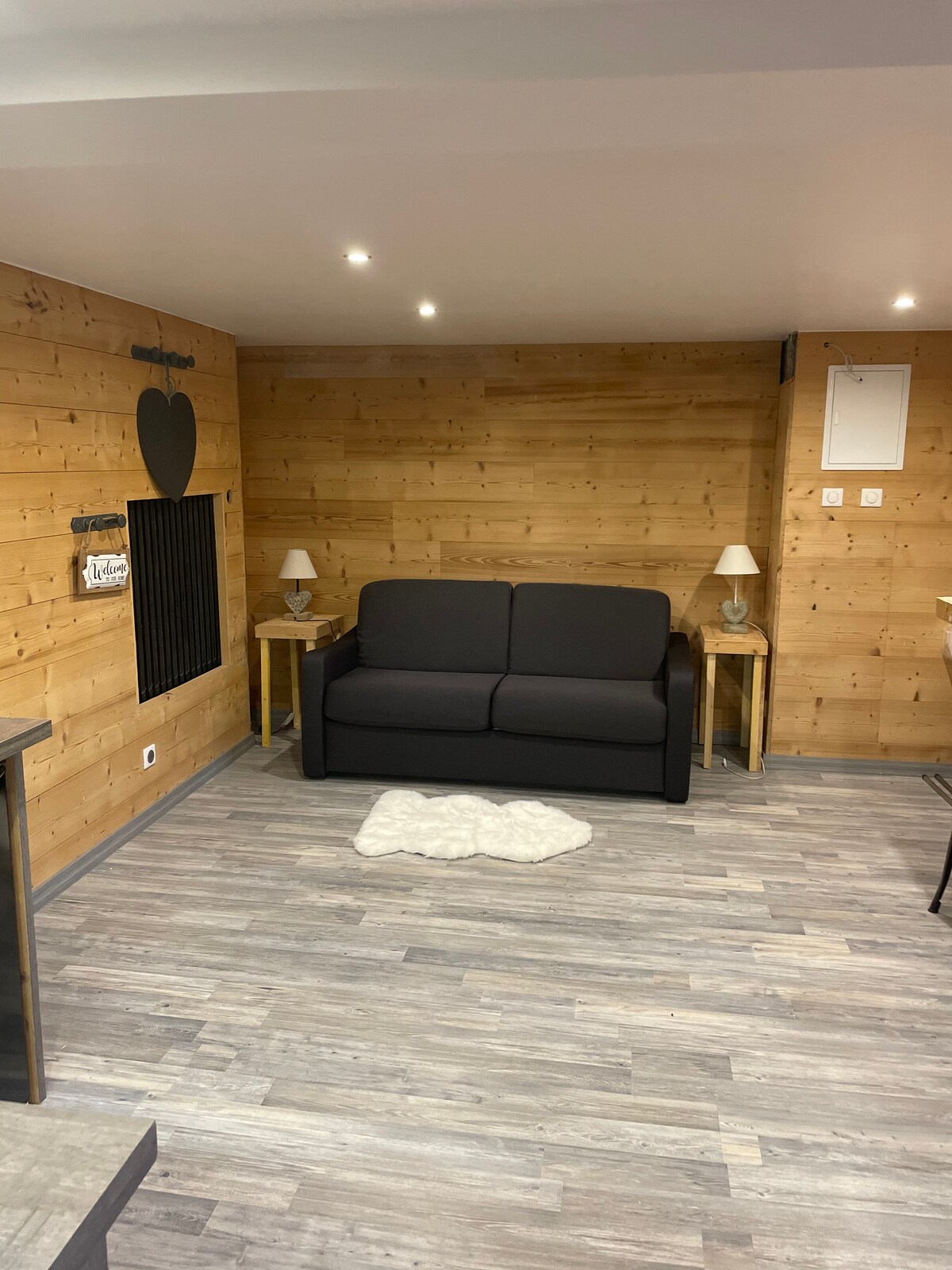 Un véritable petit cocon à la campagne à quelque minutes de Genève! Grand studio permettant 4 couchages ( un lit + un canapé convertible très confort ) Un logement très atypique crée sur mesure par mes petits artistes! Proche de tout et à la fois, au calme de notre campagne dans un style chalet luxe de nos montagnes haut-savoyardes. Vous allez adorer l'esprit régnant dans notre petit coin de paradis