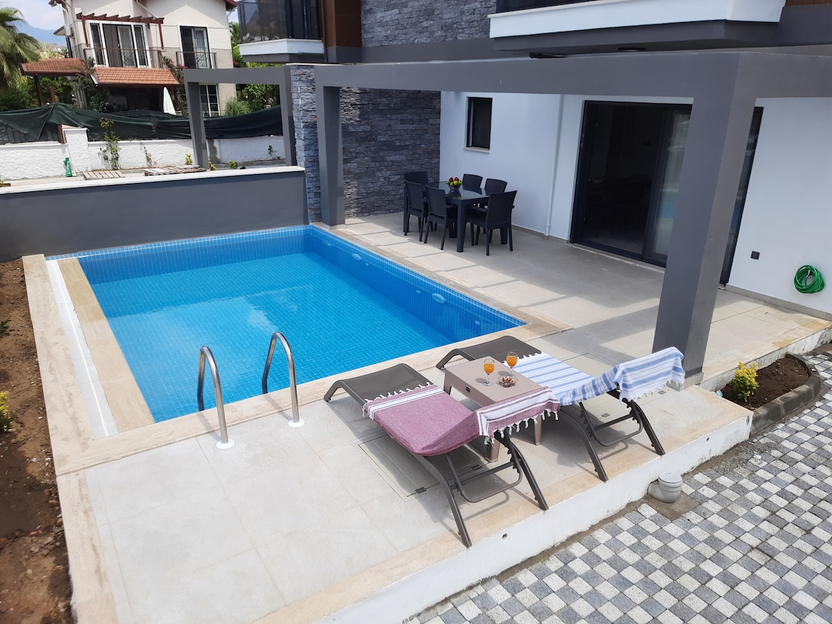 Vores villa tilbyder luksusindkvarteringsoplevelse for familier med børn, vennegrupper og bryllupsrejsepar. Beliggenheden ligger på den bedste beliggenhed i Fethiye. Foretrukket at have en fredelig, stille og rolig ferie. Fethiye ligger meget tæt på cordon , Paspatur-basaren , Calis-stranden. Du kan nemt få adgang til alle de kendte turiststeder. Du kan nå købmanden, apoteket, fitnesscentret, hospitalet og indkøbscenteret på 5 minutter.