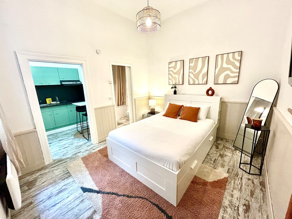 I centrum, i en Hausmann-bygning, tæt på alt (butikker, biograf, museer, togstation (10'), motorvej A20 (5'), bus (1')...), fuldt udstyret lejlighed, komfortabel på 2. sal med gammel (stejl) trappe, soveværelse/stue, køkken, badeværelse og omklædningsrum, moderne indretning. Jeg bor lige over lejligheden, hvis du har brug for noget eller information under opholdet. Udlejning til ulovlige aktiviteter vil blive indberettet til politiet og retsforfulgt.