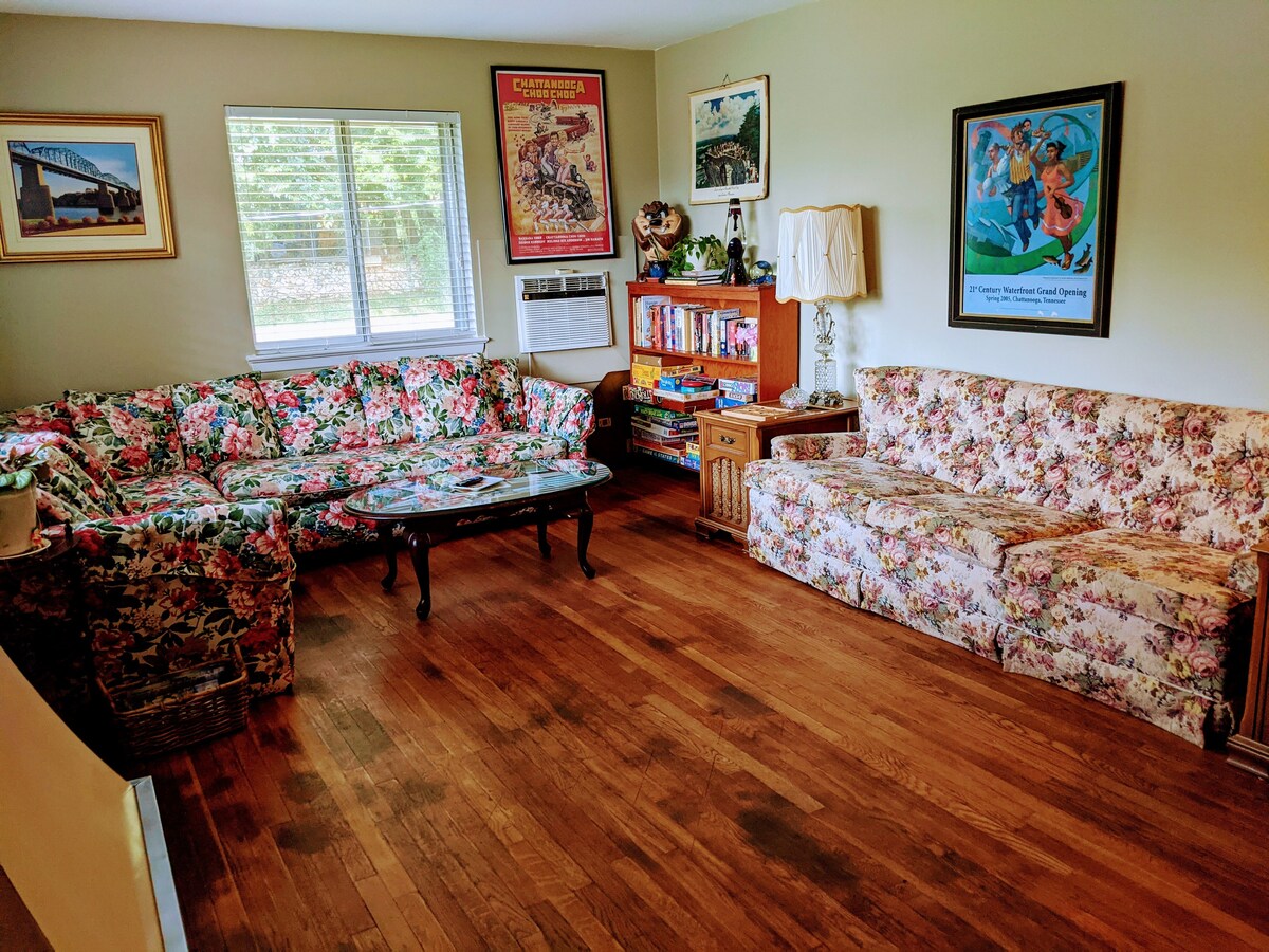 Komfortabel, hyggelig og bedårende 60'er ranch ved foden af Missionary Ridge med en vidunderlig udsigt over Lookout Mountain. Køkkenet er fyldt med gryder og pander samt urter og krydderier. Tæt på I-24, Hwy 27 og I-75. Tag kæledyr og børn med! Gården er indhegnet med en lille have og terrasse. Der er normalt en afslappende brise bagved med et skovområde bag dig for lidt privatliv, eller du kan sidde på verandaen og nyde en smuk solnedgang over Lookout Mountain.