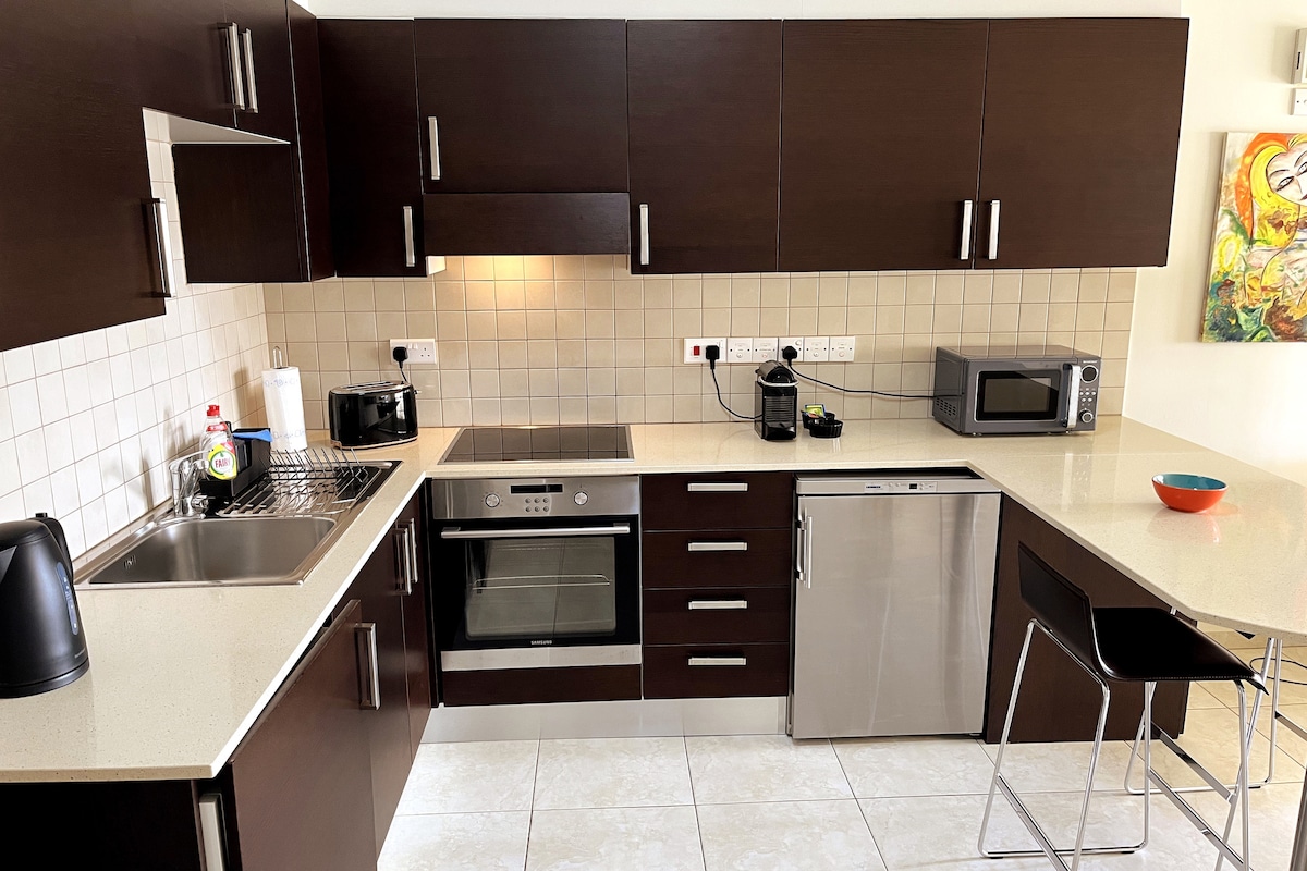 Slap af og lad op i denne lejlighed, der er designet til ultimativ komfort og bekvemmelighed. Nyd en afslappende søvn i en blød kingsize-dobbeltseng med sengetøj af høj kvalitet, og slap af med dine yndlingsfilm på et 55" tv (popcornmaskine inkluderet🍿). Vores førsteklasses beliggenhed sætter dig i hjertet af det hele. Træd udenfor og opdag caféer, butikker og restauranter lige uden for døren med den smukke Finikoudes strand, alt sammen inden for rækkevidde.