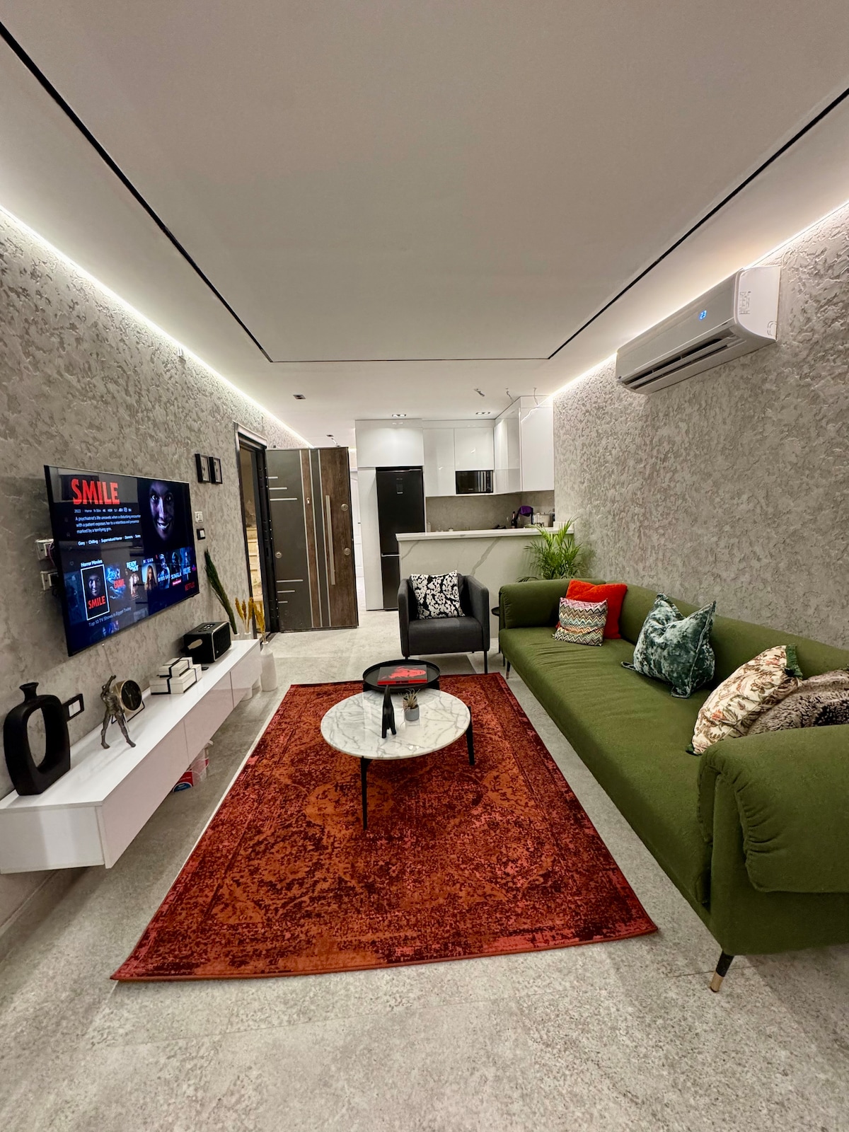 Velkommen til vores moderne 3BR (200 kvm) hotellejlighed ved West Somid Developments! Designet til familier, grupper og fagfolk. Nyd 5G Wi-Fi, 4 smart-tv, elektriske skodder og nye møbler. Sikkerhed døgnet rundt, gæstelobby, madlevering og valgfri rengøring. Gæsterne kan også nyde en fælles tagterrasse — fantastisk til filmaftener, afslappende aftener og familietid. Kun få minutter fra Mall of Arabia og de bedste Zayed-steder! ما نقدر نستضيف أي ثنائي عربي غير متزوج في نفس الشقة.