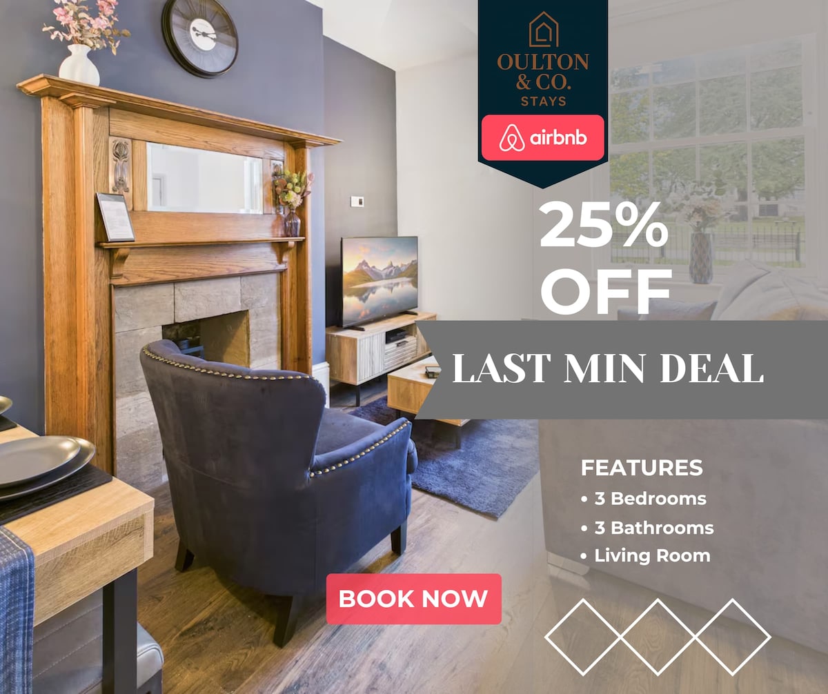 ✨ Stilfuld lejlighed i det centrale Leeds med sikker betalt parkering ➤ Med plads til op til fem gæster, perfekt til familier, venner eller forretningsrejsende ➤ Kun fem minutters gang til First Direct Arena, Victoria Gate og Trinity Leeds ➤ Ideel til koncerter, shopping eller arbejdsophold ➤ Lyst og komfortabelt opholdsområde med fuldt udstyret køkken ➤ Komfortable soveværelser med friskt sengetøj af høj kvalitet ➤ Moderne badeværelse, superhurtig wi-fi og et 50 tommer smart-tv til underholdning og afslapning