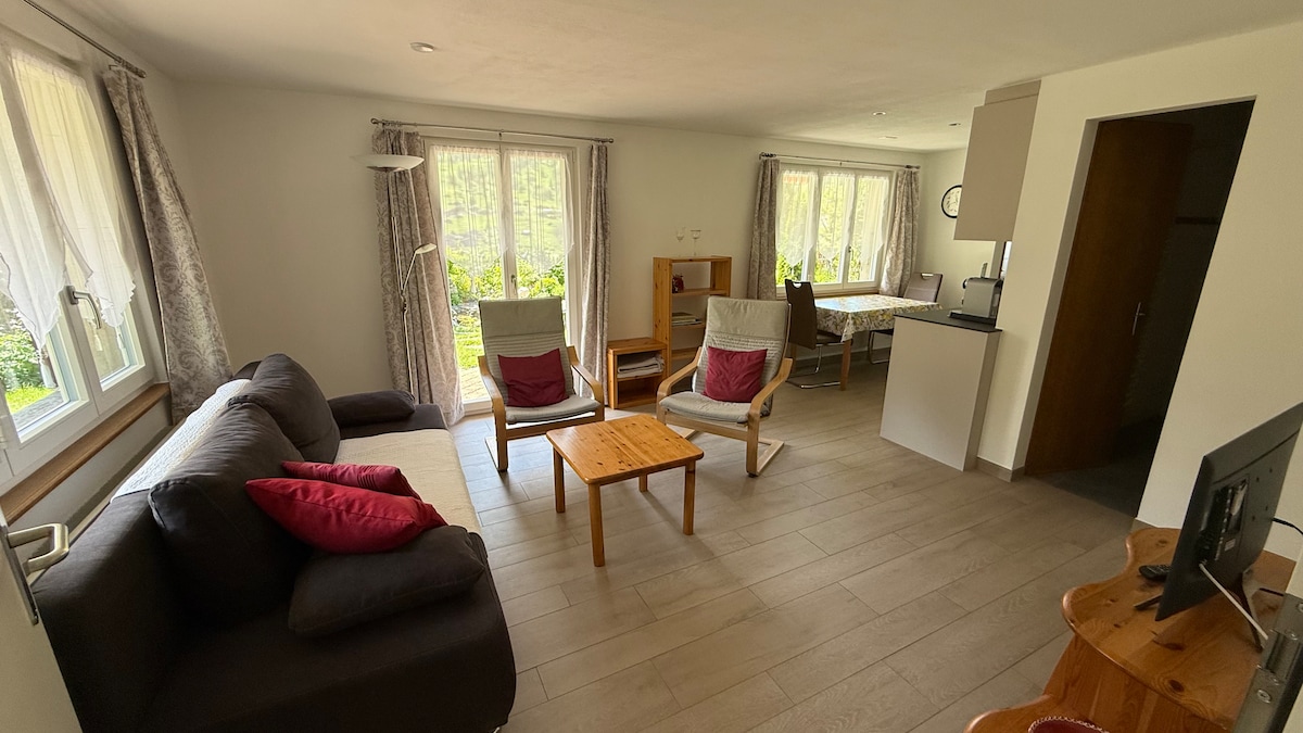 2-værelses lejlighed, 46 m2, i stueetagen, sydvendt, med en vidunderlig udsigt over de berømte bjerge. Moderne og hyggelig indretning: stue/spisestue med kabel-tv, radio og sovesofa. Udgang til den store balkon med en vidunderlig udsigt over de mest berømte bjerge i Grindelwald (Eiger North Face), 1 separat soveværelse med 2 senge og en traditionel schweizisk møbler, et fuldt udstyret køkken, brusebad/toilet. Gratis parkering i privat garage. Nyt: lille vaskemaskine på badeværelset og tørretumbler