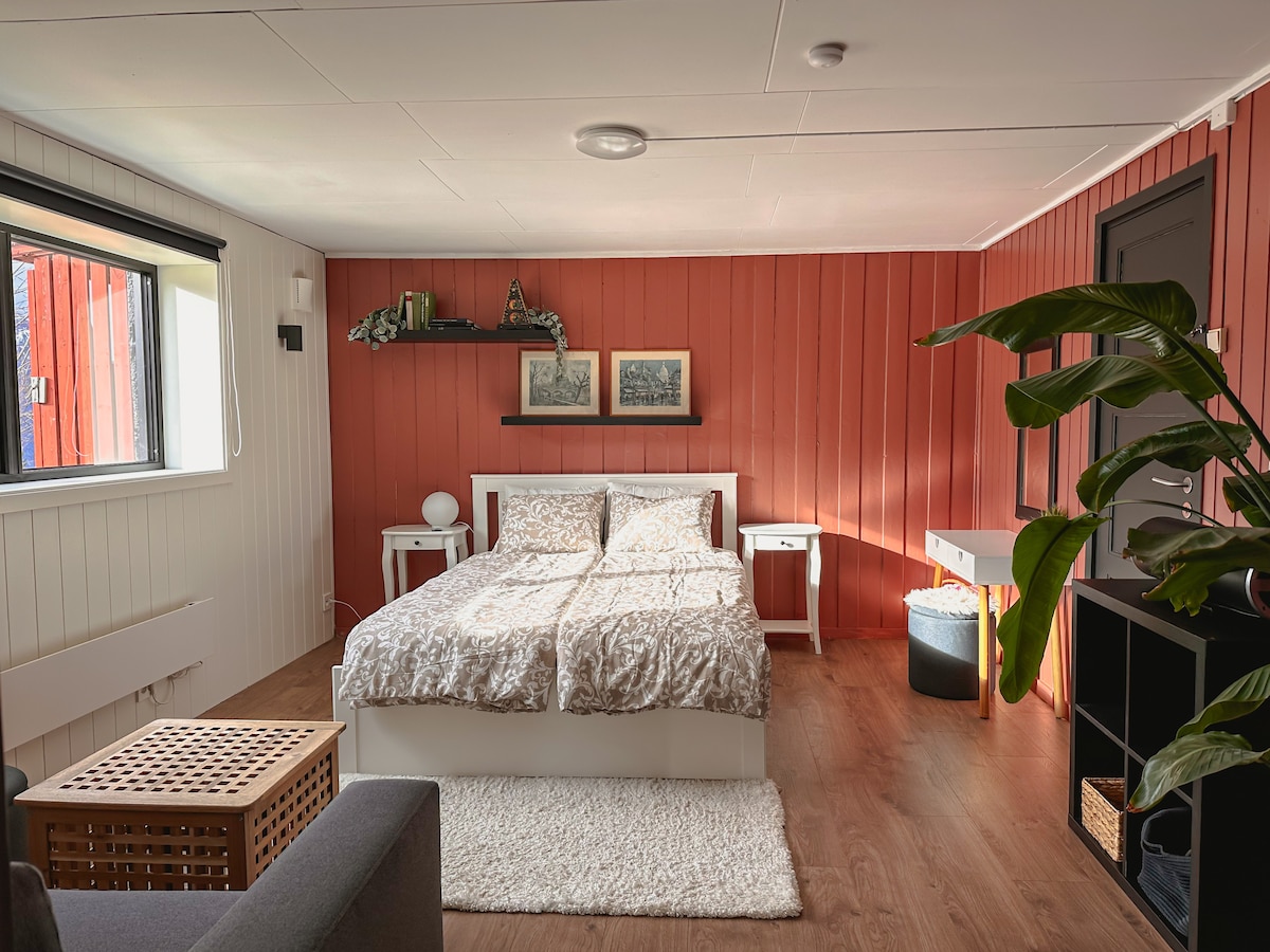 En unik mulighed for at udforske et stykke smuk norsk arkitektur og en jordnær oplevelse under dit ophold i badehuset. En stor og luksuriøs lejlighed med spa-faciliteter. Lille, men hyggeligt dobbeltværelse med en fantastisk udsigt. Adgang til smuk sauna inkluderet, også morgenmad. Sommersæson maj- okt badeværelse og køkken deles. Morgenyoga inkl. M-W-F. Fra Oktober- maj alle faciliteter for dig selv.