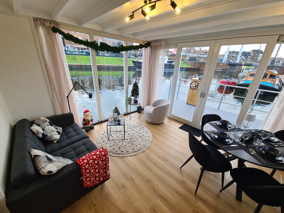Enjoy an unforgettable stay on the water in this modern houseboat.