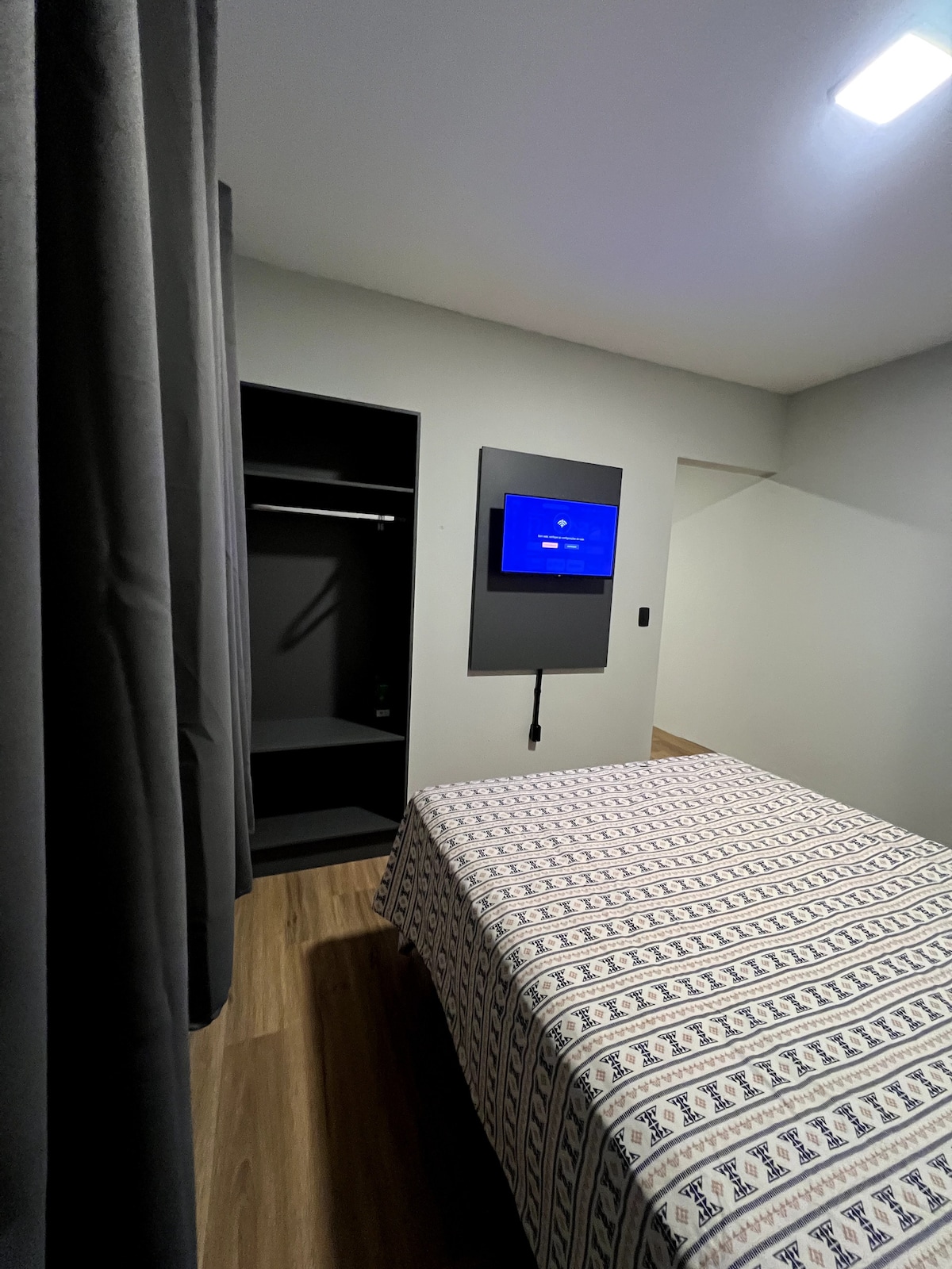Den er beliggende i en Pousada foran Lagoa da Conceição! Mange fritidsmuligheder i og nærliggende strande. Beliggenheden er privilegeret, strategisk midt i Avenida das Rendeiras, med mange restauranter og barer i nærheden. Kitinete (studio) med komplet køkken (komfur, køleskab, mikrobølgeovn og redskaber) og vaskemaskine. Dobbeltseng (har en ekstra seng - enkeltseng - nedenfor). Aircondition, kabel-tv og loftsventilator.