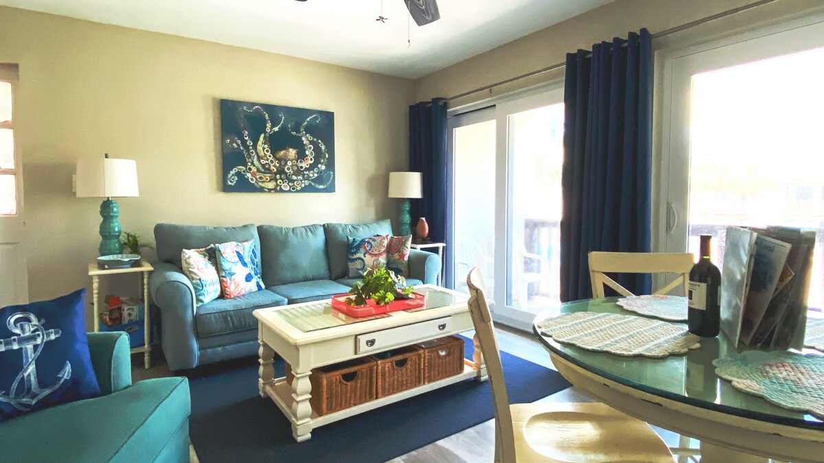 Gå direkte fra din dør ud på sandet. Denne sjældne stueetagehytte med et soveværelse ligger lige ved stranden ved Den Mexicanske Golf med uhindret udsigt over vandet og nem adgang til stranden – ingen trapper, ingen elevatorer, ingen veje. Nyd din private terrasse ved stranden, et hyggeligt og nyrenoveret interiør og din egen sandstrækning med liggestole få skridt væk. Perfekt til par eller længere ophold, der leder efter en afslappet strandoplevelse på første række i Indian Shores.