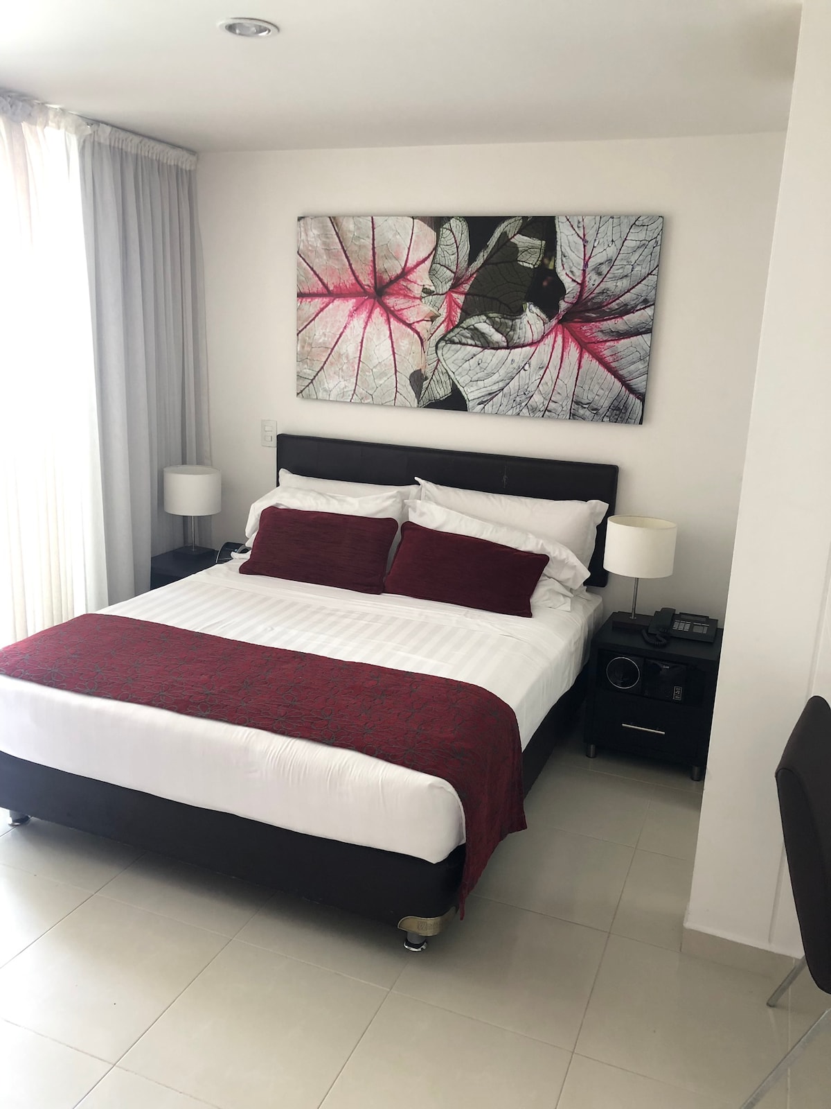 Moderno apartamento en altos de cabecera, cerca de universidades y centros comerciales, ideal para descansar, trabajar o turistear, cuenta con cama queen sabanas 300 hilos, aire acondicionado, cocina equipada , zona de trabajo, sala con tv y equipo de sonido. Acceso a terraza , lavandería, parqueadero no cubierto, maquina dispensadora de snack y bebidas. Cerradura digital. Bienvenidos!