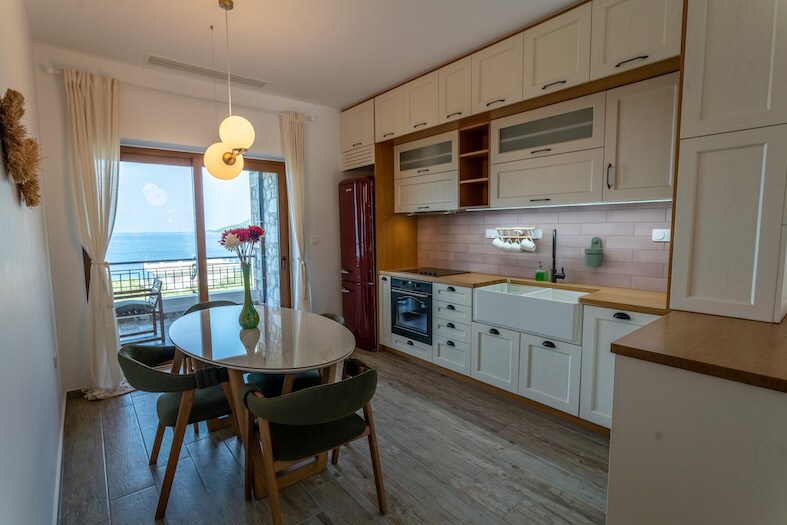 Denne nybyggede villa i to etager (2024) er selvstændig og har direkte adgang til stranden. Der er 3 soveværelser med queensize-senge + 2 enkeltsenge. Det store soveværelse har egen indgang for ekstra privatliv! Vi bestræber os på at supplere den smukke natur med komfortable faciliteter, der er i harmoni med miljøet og den fredelige beliggenhed. Villaens arkitektur er baseret på den traditionelle stil ved hjælp af farver, der blander sig smukt med det omkringliggende miljø!