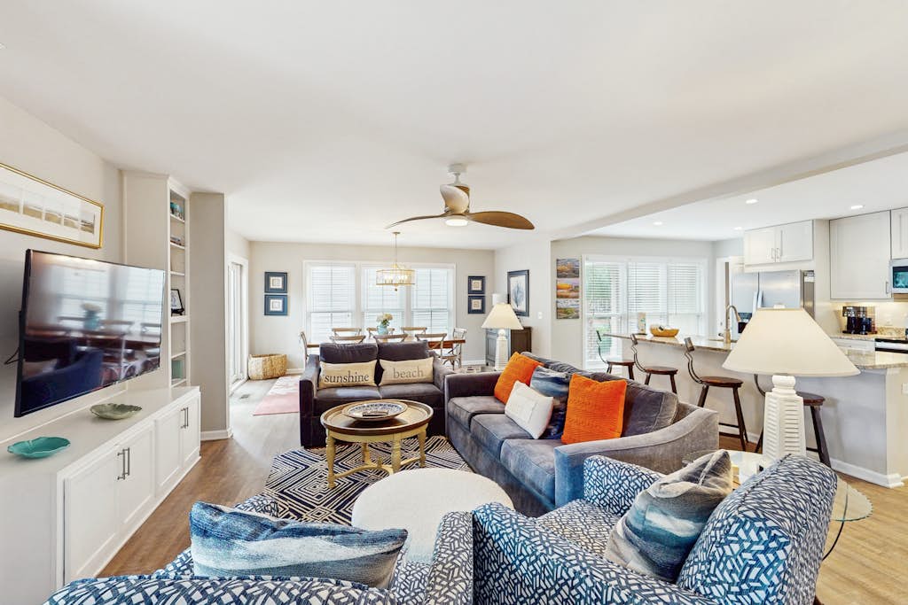 Tag på ferie til vores smukke strandferie, hvor du kun er en kort gåafstand fra en smuk naturlig strand. Vores fuldstændigt restaurerede lejlighed er designet med den perfekte blanding af luksus og afslapning, så du kan nyde din tid i Hilton Head. Vores rummelige og åbne planløsning skaber en lys og indbydende atmosfære, der er perfekt til at slappe af med dine kære og venner. Vores soveværelser giver dig en perfekt nats hvile og afslapning, mens hvert badeværelse giver den perfekte spa-lignende oplevelse