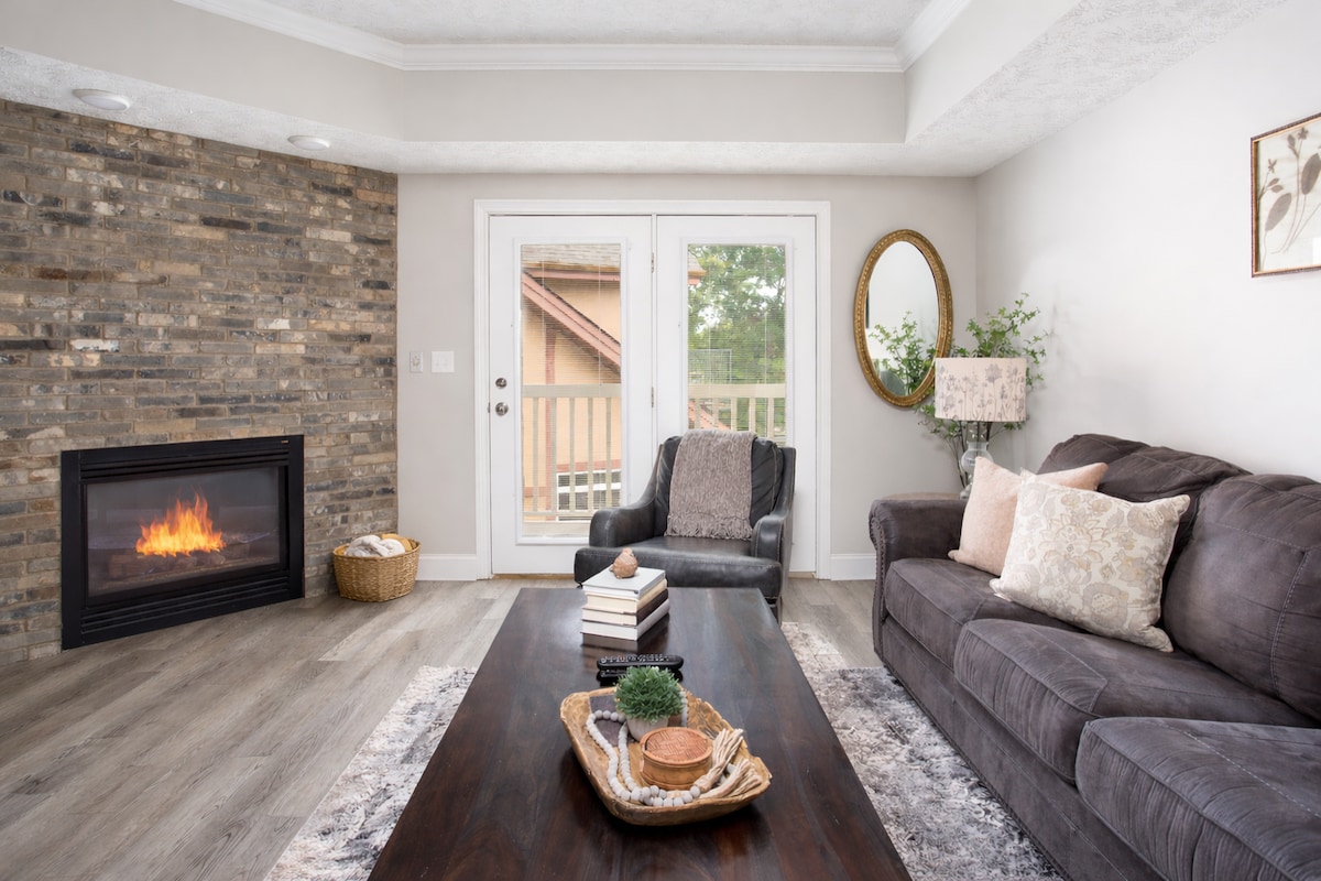 Denne stilfulde og smagfuldt ombyggede lejlighed har 2 soveværelser med 2 badeværelser. Læn dig tilbage, og slap af i den hyggelige stue med et stort 67 tommers smart-tv! Det åbne køkken giver mulighed for kontinuerlig underholdning, mens du laver et familiemåltid. Den overdækkede terrasse giver mulighed for fredeligt udendørsliv, uanset om det regner eller solen skinner. Den korte afstand til Townsend giver mulighed for hurtigt at komme til lokale spisesteder og aktiviteter. Nyd den elegante lejlighed på "Peaceful Side of the Smokies!