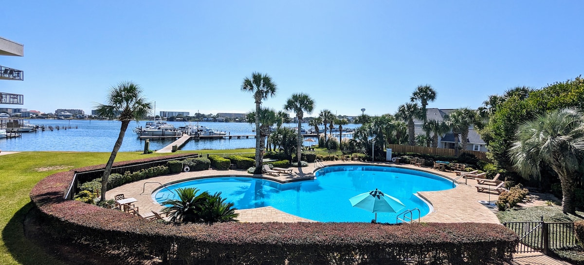 Nyd en betagende udsigt over Santa Rosa Sound og lystbådehavnen fra din private balkon på øverste etage i denne studio ved vandet. Uanset om du drikker kaffe ved solopgang eller ser pulserende solnedgange hver aften, leverer dette sted uforglemmelig kystnær charme i rolige og fredelige omgivelser. Studiet er perfekt til par eller solorejsende og har et komplet badeværelse med flisebelagt brusebad, veludstyret tekøkken og en skinnende pool. Golfstrandene ligger kun en kort køretur væk. Gratis parkering og nem indtjekning uden vært.