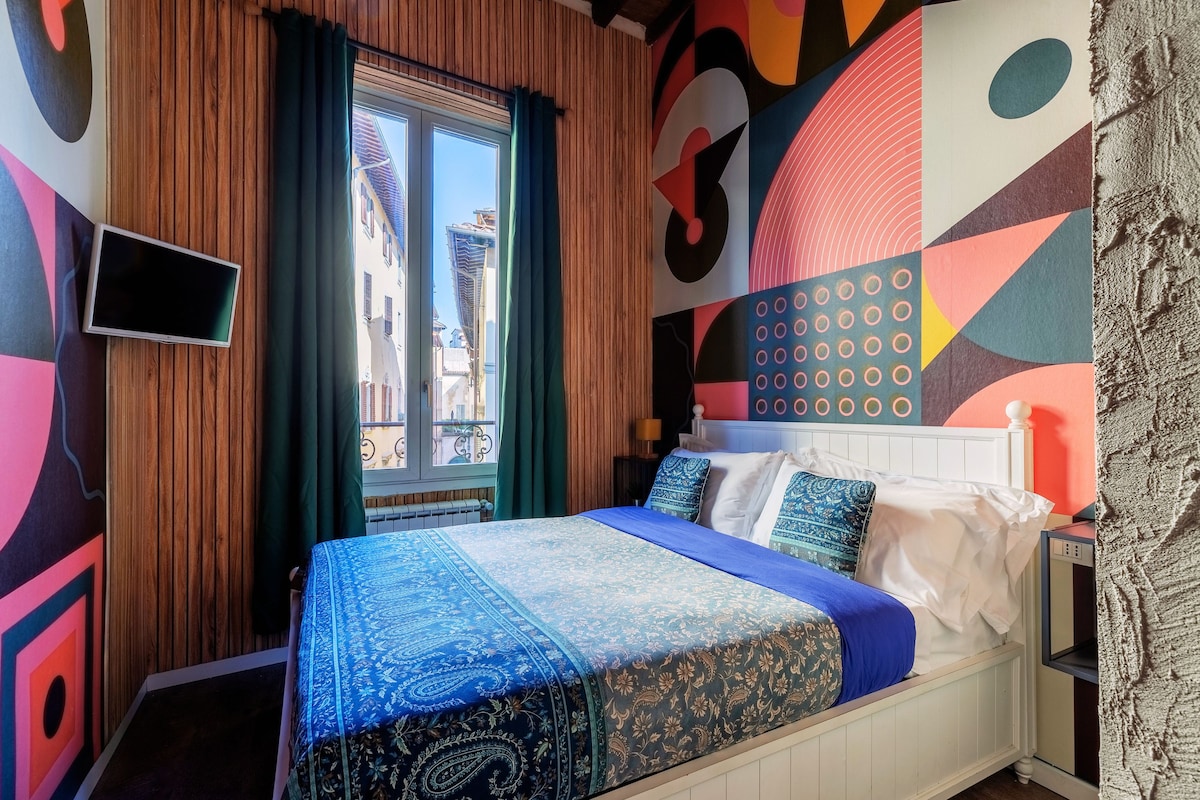 1920'er-lamper, gamle kufferter, antikke junkbokse, der alle er pakket ind i et tapet, der får dig til at føle, at du er i en have. Med ét ord: vintage. For romantiske rejsende, der som Pupa og Forese elsker elegance og at tage tilflugt i fortiden med dagens bekvemmeligheder. Dobbeltværelse med standard dobbeltseng, lænestol, garderobe, sengeskabe, spejl, kuffertstativ.