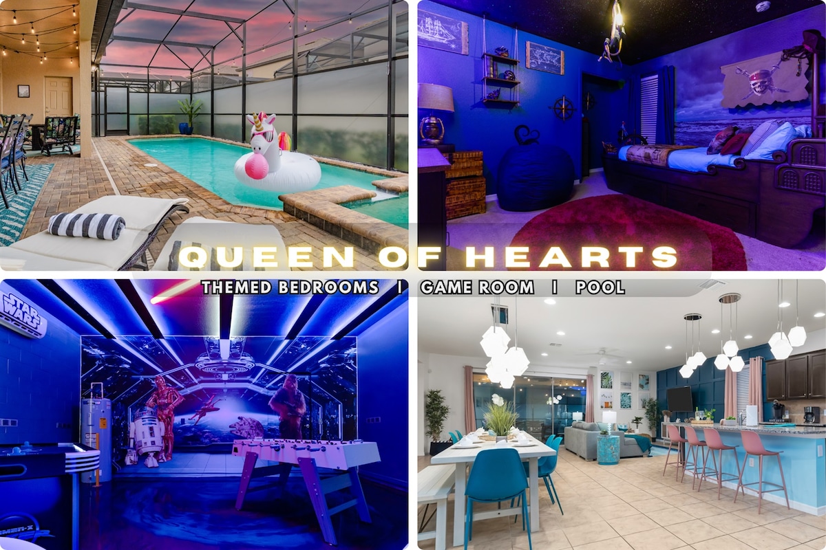 Den perfekte balance mellem STILFULDT DESIGN, LUKSURIØS KOMFORT og UENDTELIG UNDERHOLDNING i det fantastiske 3,5 kvadratkilometer store Reunion Resort. Du har din egen private pool, spa, biograf - spilrum, 3 master-suiter, 3 utrolige tema soveværelser (MARVEL, FROZEN II, NASA) til børn eller voksne, den nyeste Xbox Series X spilstation, et 2500 ft2 pooldæk med udsigt over en smuk skov og dam, bålplads, og billardbord, minutter til Disney.