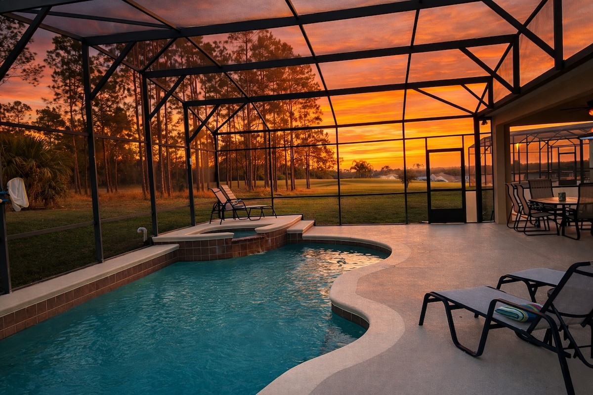 Smuk villa med 3 soveværelser og 2 badeværelser beliggende på 1/4 hektar jord, med vores egen afskærmede, private, opvarmede swimmingpool og jacuzzi, og højhastighedsinternet. Beliggende i et roligt boligområde i det eftertragtede Sunridge Woods i Davenport, kun 9 miles fra Disney. Bemærk, at rygning eller fester IKKE er tilladt i husets lokaler. Ingen poolvarmer til rådighed fra maj til oktober. **Du SKAL også være mindst 21 år for at leje denne ejendom**