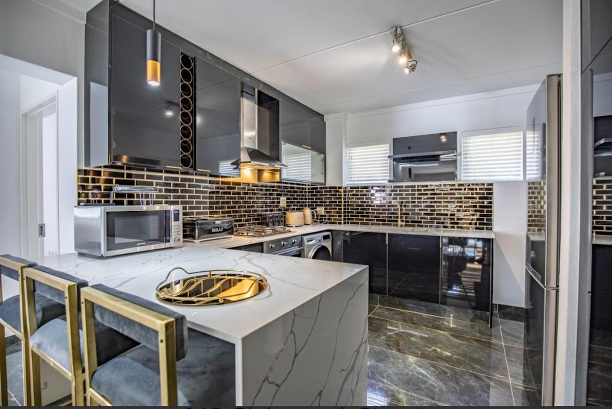 Moderne, fuldt møbleret, sikker og rolig lejlighed i hjertet af Melrose Arch. Det er den perfekte byferie og er velegnet til både fritids- og forretningsrejser. Ubegrænset fiberinternet, sikre og rolige omgivelser, automatisk inverter, et 82" tv (stue) samt et 37" tv (soveværelse), begge smarte. Bekvemt beliggende i Melrose Arch shoppingområde med adgang til alle butikker og restauranter. Backup-generator i bygningen, sikker og sikret parkering med 24-timers sikkerhed 😊