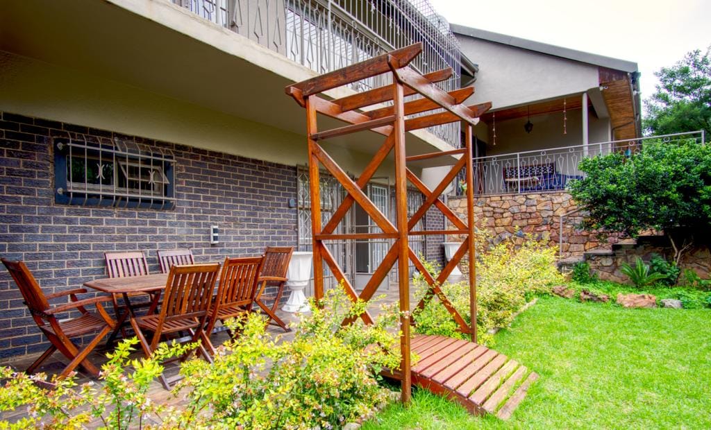 Beliggende i en rolig cul-de-sac og sikker. Spiseplads og fuldt udstyret køkken med gaskomfur. Hyggelig stue med Smart TV, Showmax/Netflix/YT. Gratis, hurtig ubegrænset WiFi. 3 soveværelser ovenpå, hver med et skrivebord, der åbner ud til en pyjamaslounge. Hovedsoveværelse med kingsize-seng, eget komplet badeværelse, jetbadekar og balkon. Privat indmuret have med stor murstensgrill/braai og møbleret Lapa. Portadgang til park. Vaskemaskine, roterende tøjsnor. Enkelt garage. Fantastisk til grupper, familier, lange og korte ophold!