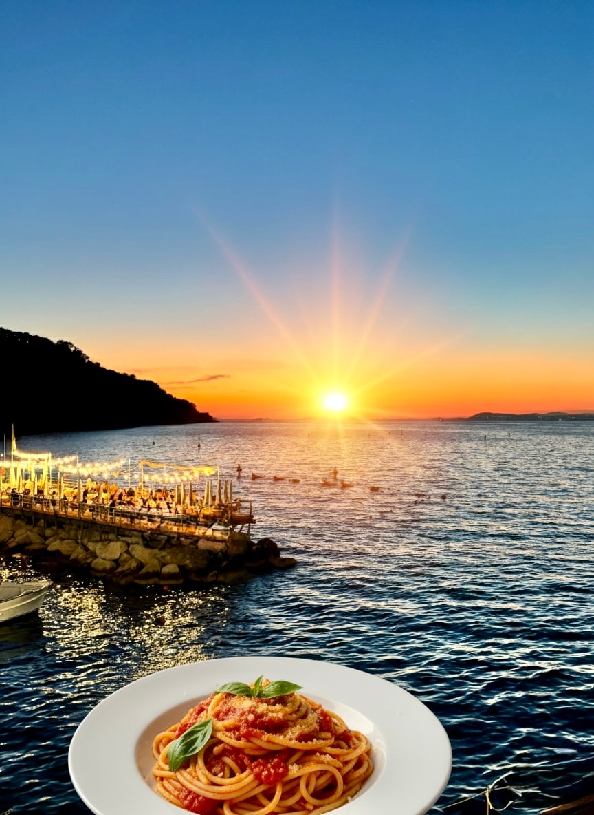 En hemmelig perle på Posillipos klipper med en fantastisk udsigt over Napolibugten. Nyd en privat strand, liggestole, kanoer og en drømmende stue over vandet. Kun få minutter fra byen, men helt fredeligt. Du kan nå den via en elevator gennem klippen eller en charmerende gammel trappe. Perfekt til dem, der søger skønhed, privatliv og uforglemmelige solopgange.
