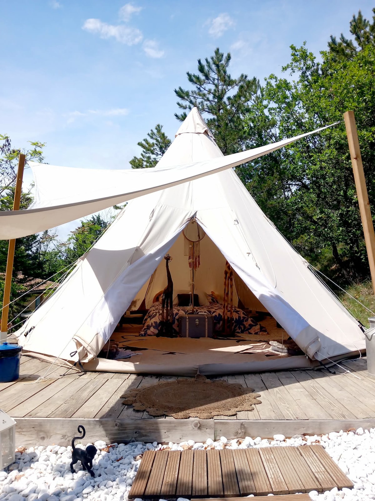 Ved foden af klipperne i Roussillon, i hjertet af Luberon, vil du opdage vores Tipi. Velkommen til La Tribu des Ocres. Hos os kan du glemme din bil ... landsbyen ligger kun 5 minutters gang væk, så du vil både være i naturlige omgivelser og tæt på alle bekvemmeligheder. Nyd den harmoniske sang fra fugle og cikader, når du vågner.