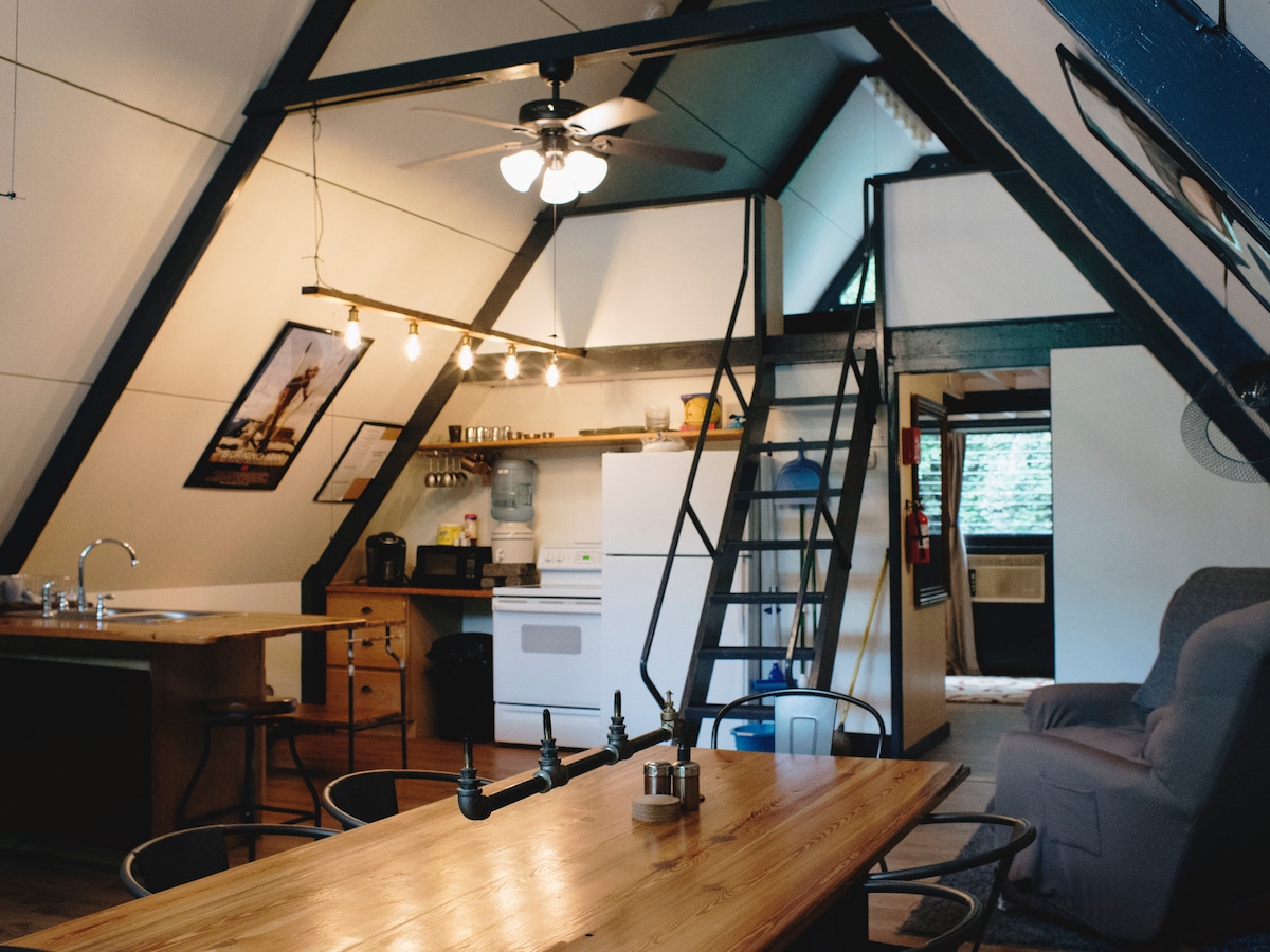 A-Frame er et vintage 1955 Sears and Roebuck-sæthus, der for nylig er blevet ombygget til din Airbnb-fornøjelse! Denne A-ramme ligger langt tilbage i skoven, men ligger kun få minutter fra motorvejen, film, indkøbscentre, spisesteder og alt det, Montgomery har at byde på. Lidt af en "bedste af begge verdener" situation. 20 minutter fra Maxwell og Gunter AFB, 50 minutter fra Auburn og 2 minutter fra I-85. A-rammen er kæledyrsvenlig, alt, hvad vi beder om, er, at hvis dine pelsbørn fælder, skal du rydde op efter dem, inden du tager af sted.