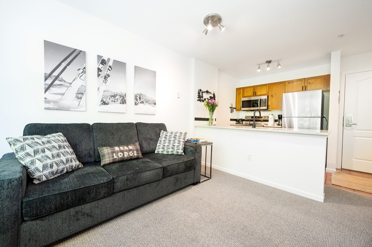 Welcome to your Whistler Escape! Located in the Whistler Creek Lodge, enjoy views of Whistler Mountain from the sofa. All amenities are within walking distance: ski lift, restaurants, groceries, rental shops, parks, etc. ✔ 5 mins to Creekside Gondola ✔ FREE Parking ✔ Hot Tub ✔ Full Kitchen ✔ Queen bed & pull-out couch ✔ High-Speed WIFI / Netflix / Cable ✔ Fireplace w/ electric insert (provides heat + ambience) ✔ Outdoor Pool (summer) Bonus: Creekbread Pizza restaurant downstairs