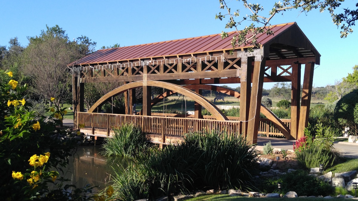 Dette er en af få boliger i Hill Country og stadig 5 minutter fra downtown Fredericksburg. Det ligger på 43 hektar og tilbyder et væld af eksotisk dyreliv. Når du kører ind, vil der være en anden port, der er en gammel træbro, der krydser en dam med kaskadevandfald! Du er velkommen til at fiske i dammen eller vores bæk ude bagved. Vi tilbyder ikke morgenmad, men køkkenet er fuldt udstyret med gryder og pander. Vi leverer kaffe, sukker og fløde.