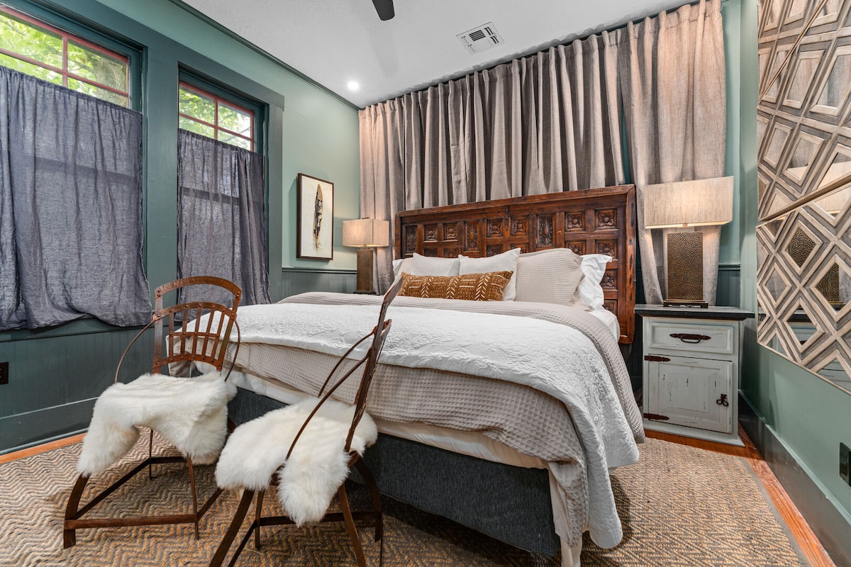 Amenities of the suite include all new modern renovations with luxury designer finishes, a Samsung Frame TV, walk-in shower, king bed, full kitchen, mini kitchenette, and best of all, the most enviable location in town, just 1 block from the famed historic downtown shopping district. Tasting rooms, shops, dining, bars, and everything else Fredericksburg has to offer, all just steps from the front door! Pop the bubbly! Book today!