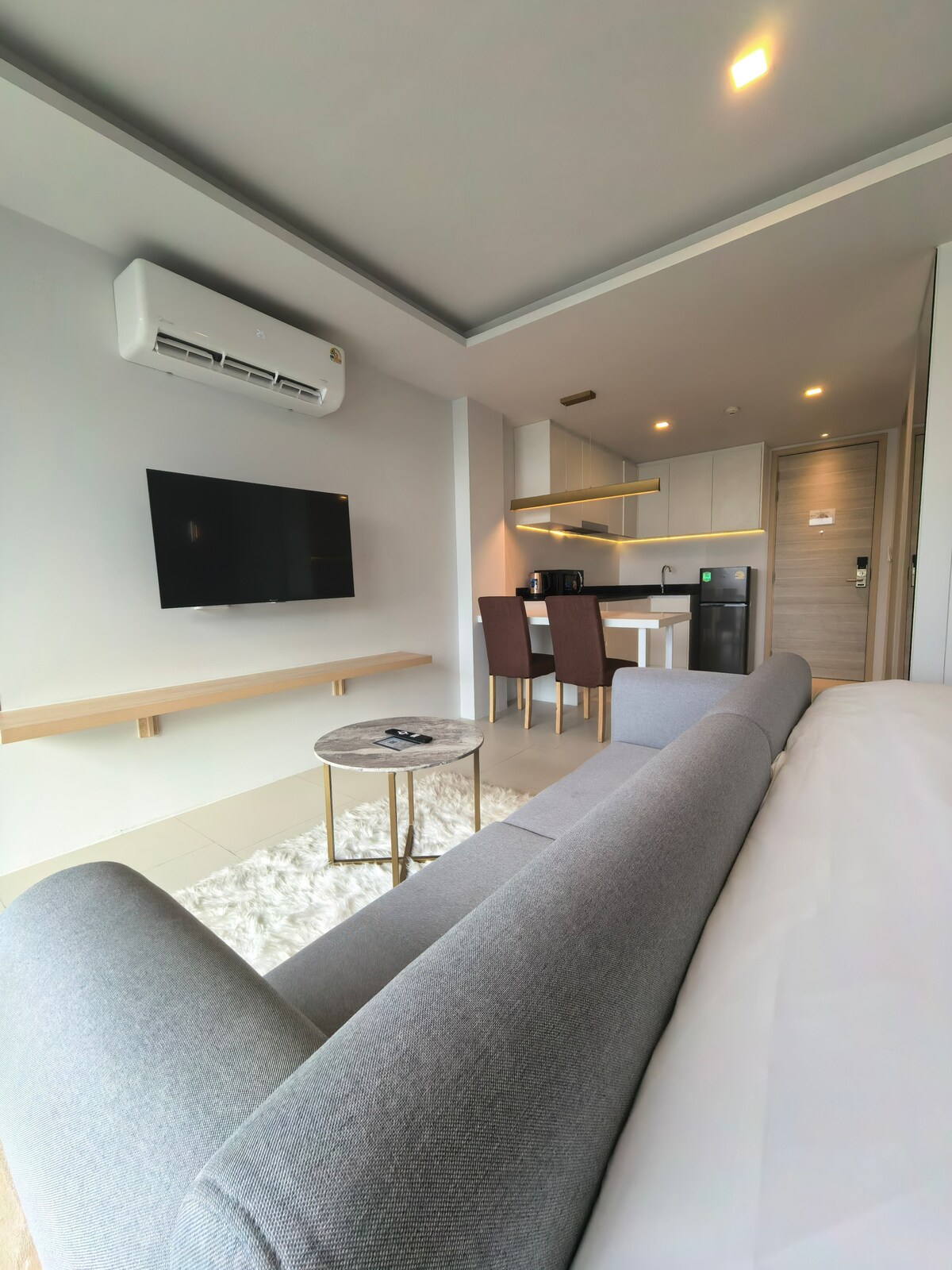 45 kvadratmeter stort værelse med et soveværelse og en stue 1,8 * 2,3 meter stor seng, rummelig og komfortabel Privat køkken komplet med europæuropæisk service Køleskab, aircondition, hårtørrer, badesæbe og shampoo gratis Rummelig privat balkon Udendørs dobbelt swimmingpool og fitnessrum Gratis wifi. Kabel-tv 24-timers sikkerheds service, parkeringsplads, kortlæser til lejligheden, sikker og pålidelig Første udlejning. Hvis du ikke er tilfreds, kan du kontakte mig.Jeg vil gøre mit bedste.Giver dig den bedste service.Den bedste lejlighed i Pattaya.Nyt kvarter. Super bekvem beliggenhed.Der er en nærbutik lige uden for døren.Massage. Bar. Frugsbutik Alle offentlige faciliteter i området kan bruges 50 meter lang infinity pool nedenunder, infinity pool med havudsigt på taget, fitnesscenter, sauna, offentligt grillområde, parkeringsplads osv. Kontakt mig, hvis du har spørgsmål 5 minutter til Patong Beach 10 minutter til Jiangxi Cold Bar Street Fiskemarked Bemærk. Rummet er fuldstændig røgfrit.Du kan ryge på altanen. Altanvinduet skal være lukket, ellers udløses røgalarmen.