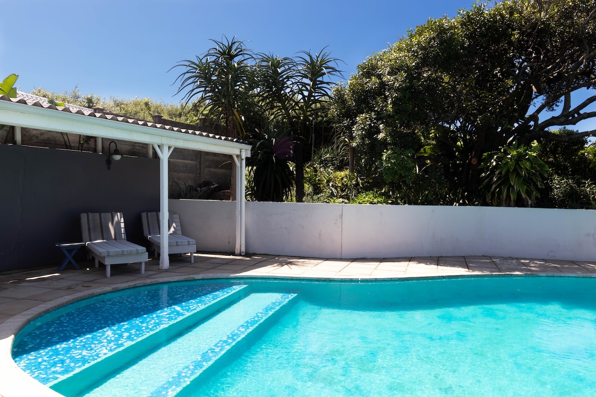 Tag på ferie i vores rummelige feriehus med 4 soveværelser i Scottsburgh, kun en blok fra golfbanen og tæt på stranden. Nyd et fuldt udstyret køkken, en hyggelig stue og et indbydende barområde. Slap af ved den funklende pool eller slap af i den frodige have. Alle soveværelser tilbyder komfort med aircondition, tv, og 3 har eget badeværelse. Underholdningsområdet og braai-området er perfekte til at skabe minder med dine nærmeste. Din fredfyldte kystferie venter – oplev varmen og charmen ved denne særlige ferie.