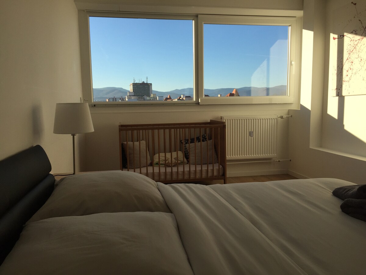 Elegant panorama-lejlighed på loftet med elevatoradgang. Moderne design og betagende panoramaudsigt over skoven og slottet. Om aftenen giver den oplyste silhuet af det fugtede slot panorama en magisk atmosfære. Lyst og harmonisk interiør. Kun 15 minutters gang fra byens centrum. Lejligheden er det perfekte udgangspunkt for byrejser, forretningsrejser og rekreation i Schwarzwald.