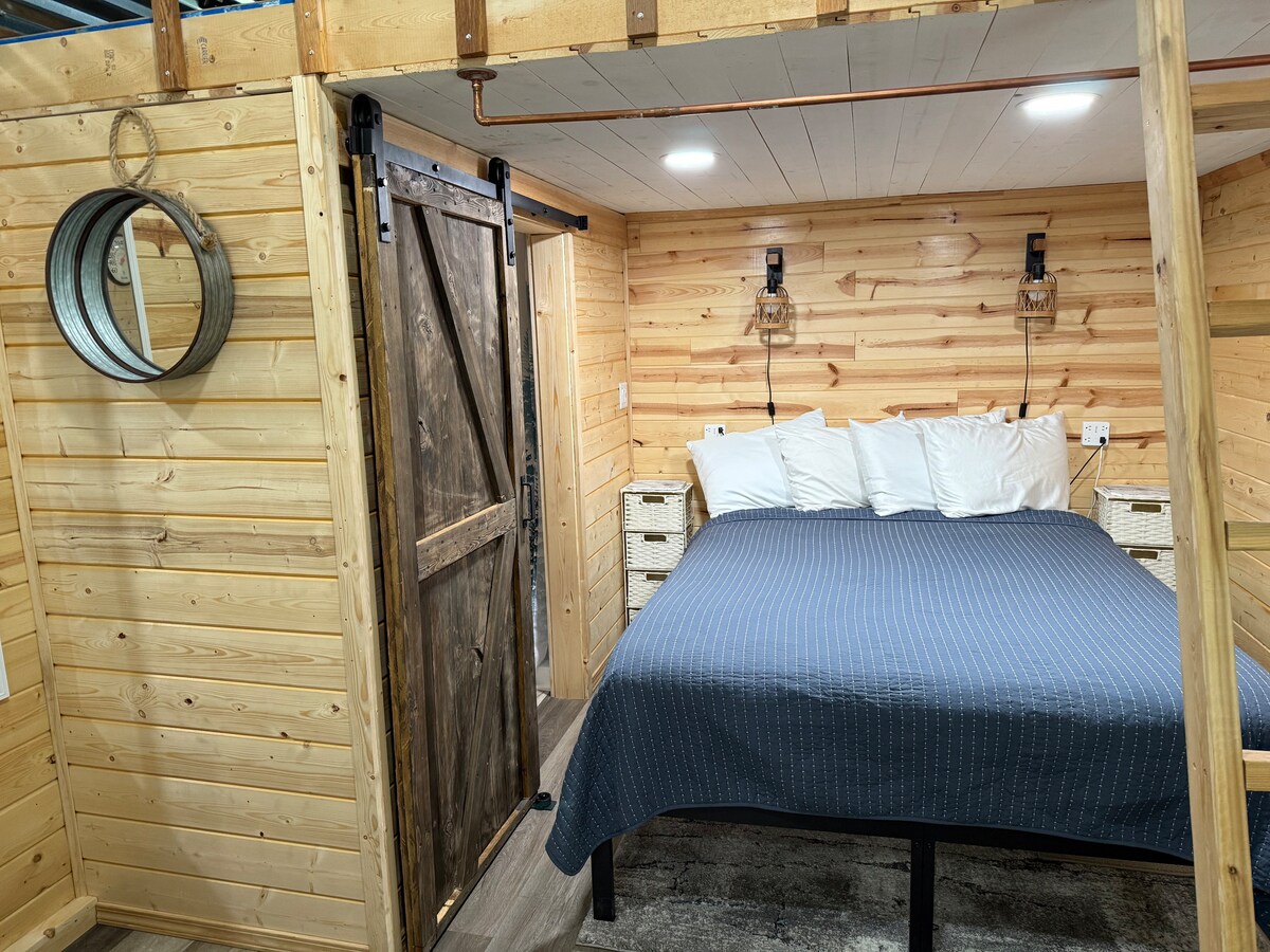 Velkommen til Fox Grove Cabin! Denne bolig er det PERFEKTE tilflugtssted for par eller små familier, der rejser med kæledyr! Denne bolig har en indhegnet gård og hundedør. Tager du din hund med på ferie, men er du bekymret for at efterlade den derhjemme hele dagen? Led ikke længere! Fox Grove Cabin er hundevenlig! Denne bolig er designet med par og kæledyr i tankerne! To soveværelser, hver med adgang til et komplet badeværelse. Det ene soveværelse har en kingsize-dobbeltseng, og det andet har en queensize-dobbeltseng.