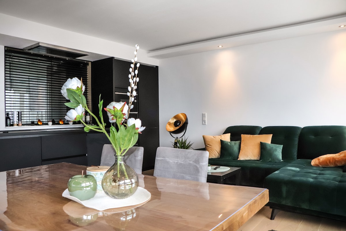 Moderne, venligt og lyst 65 m² loft i en beliggenhed i centrum. Loftet er opdelt i en rummelig stue bestående af en hyggelig sofa, tv-område, et stort rum med åbent køkken og et hyggeligt separat soveområde. Et andet højdepunkt er luksusbadeværelset. Byens centrum kan nås til fods på mindre end 1 minut. På trods af sin centrale beliggenhed, meget stille, herunder panoramaudsigt over Kassel. Tog-/busforbindelser lige uden for døren