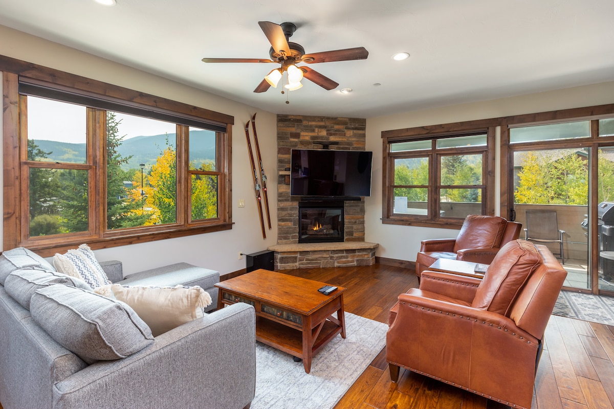 Meget flot, rent og hyggeligt 1 soveværelse med overdimensioneret loft og 2 badeværelser, beliggende i hjertet af Summit County og alle dets aktiviteter. En af de største, mere private enheder med ekstra vinduer og hvælvede lofter. Der er plads til op til 6 personer. Det store soveværelse har en kingsize-seng, og der er to dobbeltsenge på loftet. Loftet er virkelig rummeligt, og der er også et opholdsområde med en sofa og tv. Køkkenet, spiseområdet og stuen med pejs er beliggende på t