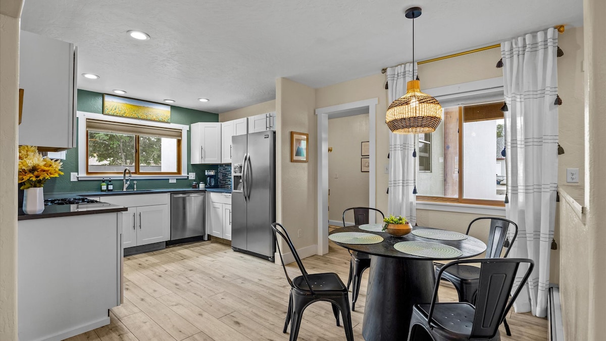 Nyd charmen ved dette skønne, historiske hjem i centrum af Fruita. Gangafstand til restauranter, kaffebarer og dagligvarebutik. Tag på vandretur og cykeltur til de smukke destinationer i nærheden, og slap derefter af på den hyggelige veranda. Stå på ski i Powderhorn, eller tag en tur på Palisade Plunge. Gå til Fruita Rec for at spille pickleball, svømme eller træne Vil du ikke lave mad? Gå over gaden til Fruitas berømte Hot Tomato Pizza!