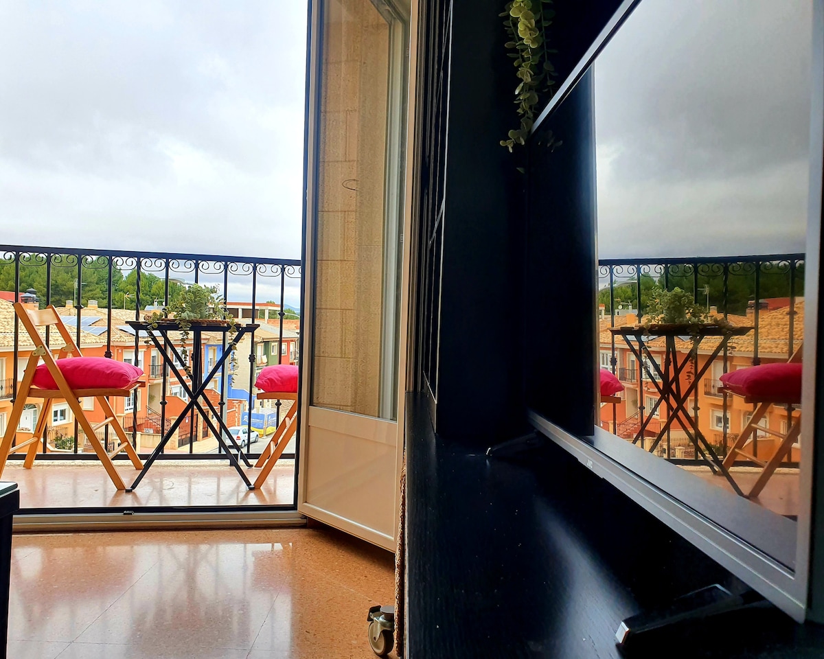 Lys lejlighed i hjertet af Albacete Med GRATIS PARKERING inkluderet i prisen, meget tæt på. Beliggende på femte sal med elevator. Fuldt udstyret køkken: kogeplade, ovn, mikroovn, Nespresso-maskine (med gratis kapsler). Vaskemaskine/tørretumbler for ekstra komfort. Stue/spisestue med tv, spisebord og stole. Stor arbejdsstation med plads til bærbar computer og stikkontakter. Aircondition og varmepumpe i alle rum. Sengetøj og håndklæder er inkluderet.
