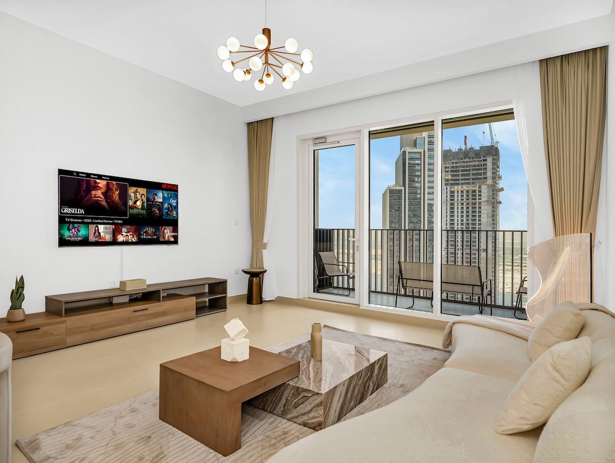 Bo på The Crest – Sobha Hartland, i en moderne 1-værelses lejlighed, ideel til arbejde eller afslapning.Nyd et lyst opholdsområde med terrasse, hurtig Wi-Fi, swimmingpool, indendørs og udendørs fitnesscenter, sky lounge og parkering.Slap af i haver og på panoramaterrasser, kun få minutter fra Downtown Dubai og Business Bay.Komfort, produktivitet og stil i én oplevelse.
