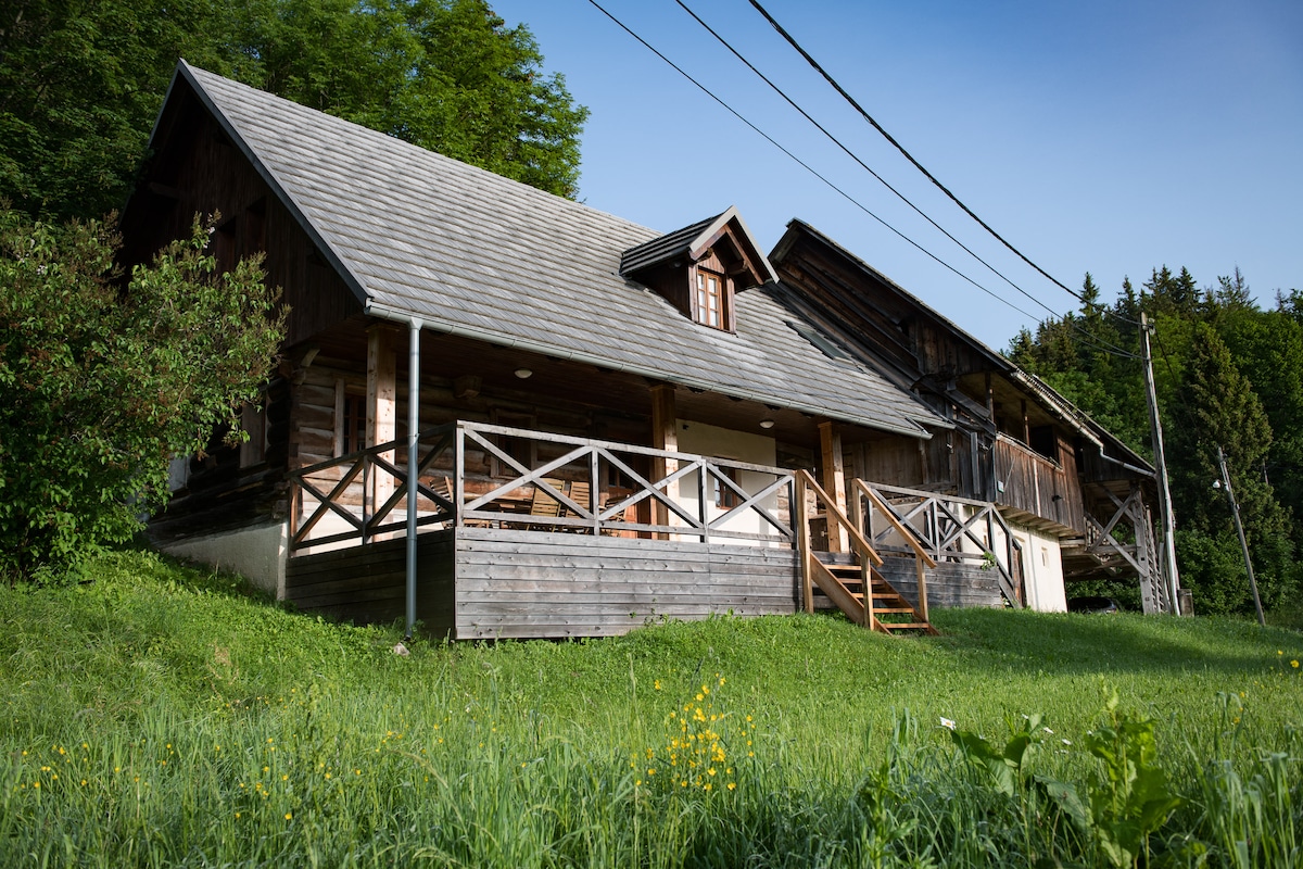 Eventyrhytte Slap af i en hyggelig rustik hytte i hjertet af Triglav Nationalpark, kun få minutter fra Bled. Omgivet af uberørt natur, 🌲 stille, grønt område, perfekt til naturskønne gåture eller spændende vandreture gennem dramatiske kløfter som Vintgar og Pokljuka Gorge. Nyd udendørs eventyr – vandring, cykling eller kanosejling – og træk dig tilbage til din private have for at få fred og ro. Ideel til familier, grupper og naturelskere. Kæledyrsvenlig og fuld af bjergcharme!