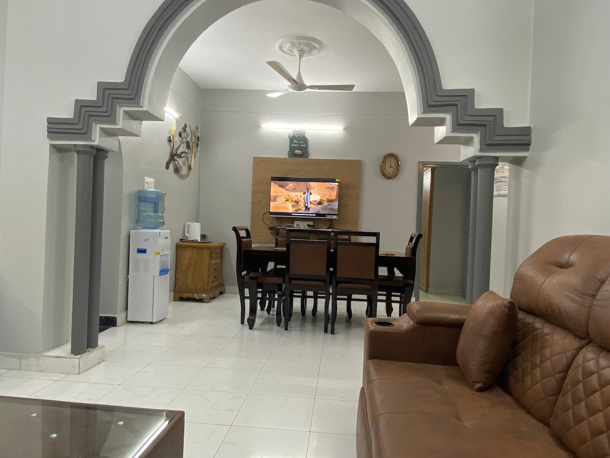 Luksuriøs, hjemlig, afsidesliggende og kun 5 minutter fra Hi-Tech City, denne lejlighed i fuld etage på 2. sal er perfekt til: - Familie på 2-15 personer, bryllupsgæster, NRI'er osv., der har brug for en centralt beliggende bolig og daglig rengøring. - Fjernarbejdere, der har brug for højhastigheds-wi-fi, et fuldt udstyret køkken og vekselretter. - Par, der ønsker en kortvarig ferie og afslapning foran et 50" 4K-smartTV - Venner, der har brug for et privat sted at hænge ud i byen INDTJEKNING UDEN VÆRT med Smartlås