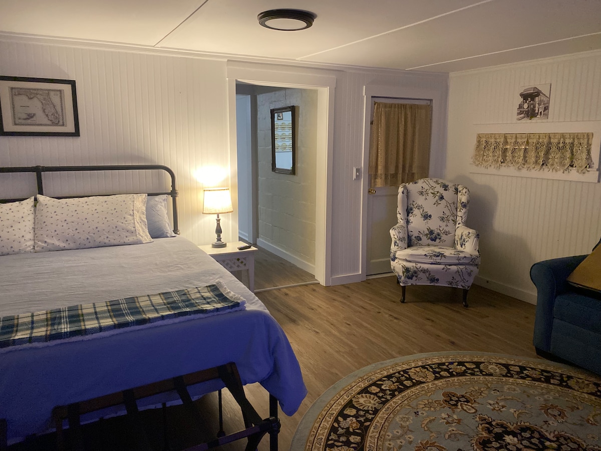 Oplev College Town i vores hyggelige atelier, få skridt fra Doak Campbell Stadium og FSU campus. Sover 3 med en kingsize-dobbeltsengssuite. Ideel til kampdage, campusbesøg eller til at opleve den lokale kultur. Book nu for bekvemmelighed, komfort og uforglemmelige minder. Bemærkninger Husk at sætte parkeringsmærkatet på din bil og returnere det på udtjekningstidspunktet for at undgå et erstatningsgebyr på 50 dollars.