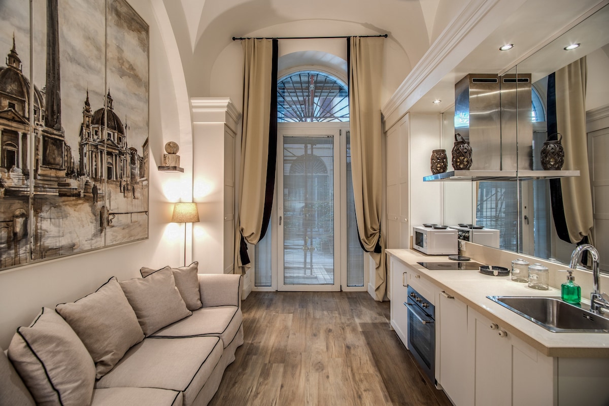 I hjertet af Roma, elegant og charmerende lejlighed med to soveværelser med dobbeltsenge, nyligt renoveret og omhyggeligt indrettet for at tilbyde et romantisk og behageligt ophold. Beliggenheden, kun få skridt fra Via Veneto, den amerikanske ambassade, Villa Borghese-parken og metrostationerne Spagna og Barberini, giver dig mulighed for at udforske byen, mens du spadserer gennem skønhed og historie. I nærheden finder du markeder, restauranter, pizzeriaer, apoteker og taxa-/busstoppesteder. Et ideelt og raffineret sted i byen.