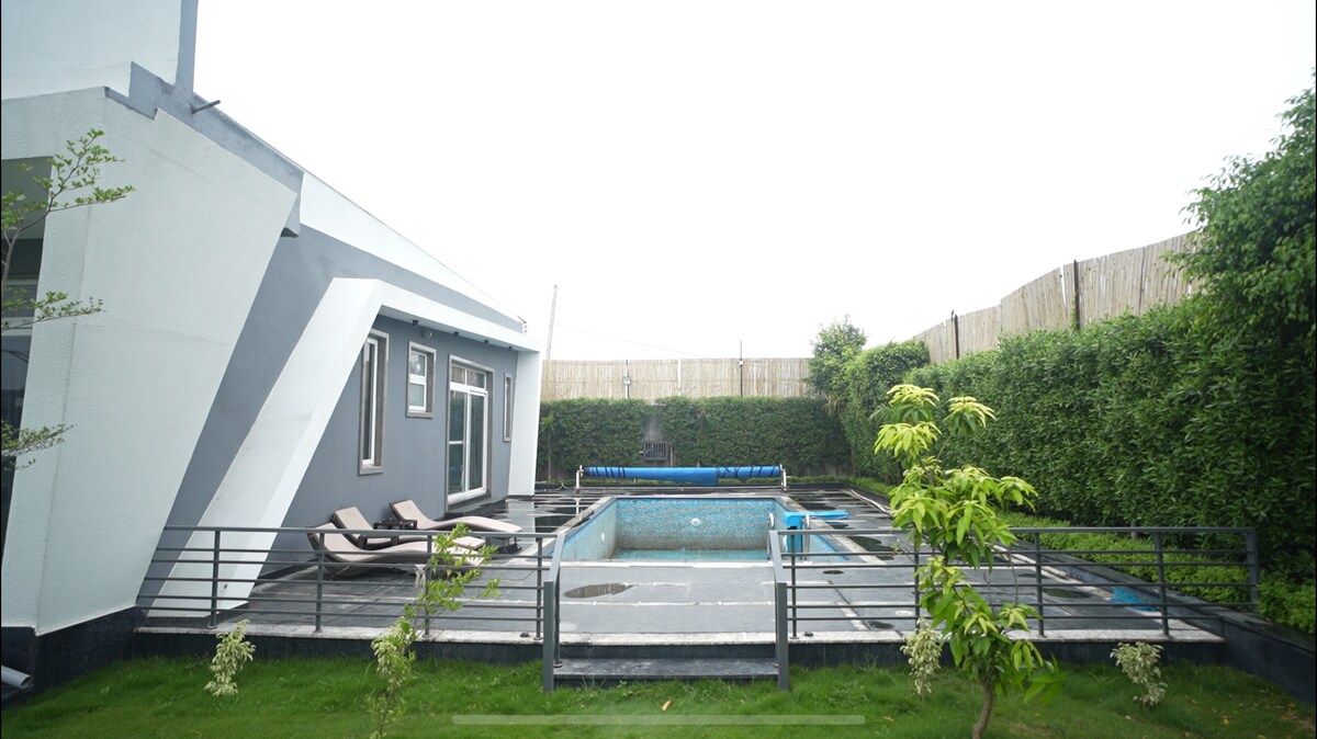 Find dig til rette i dette unikke og fredfyldte sted, der er perfekt til dem, der ønsker at slappe af og genoprette kontakten. Ideel til familie- og vennearrangementer, korte ophold, fejring af særlige øjeblikke, fødselsdage og fotoshoots før bryllup. Du vil nyde en boutique-pool med et vandfald og et par etniske baithaks med en choolha, jhoola, bålplads, velholdt have og pavillon, der alle er designet til afslapning eller til at være vært for små, intime familiefunktioner. Oplev rene, luftige og grønne udsigter i dette unikke fristed!