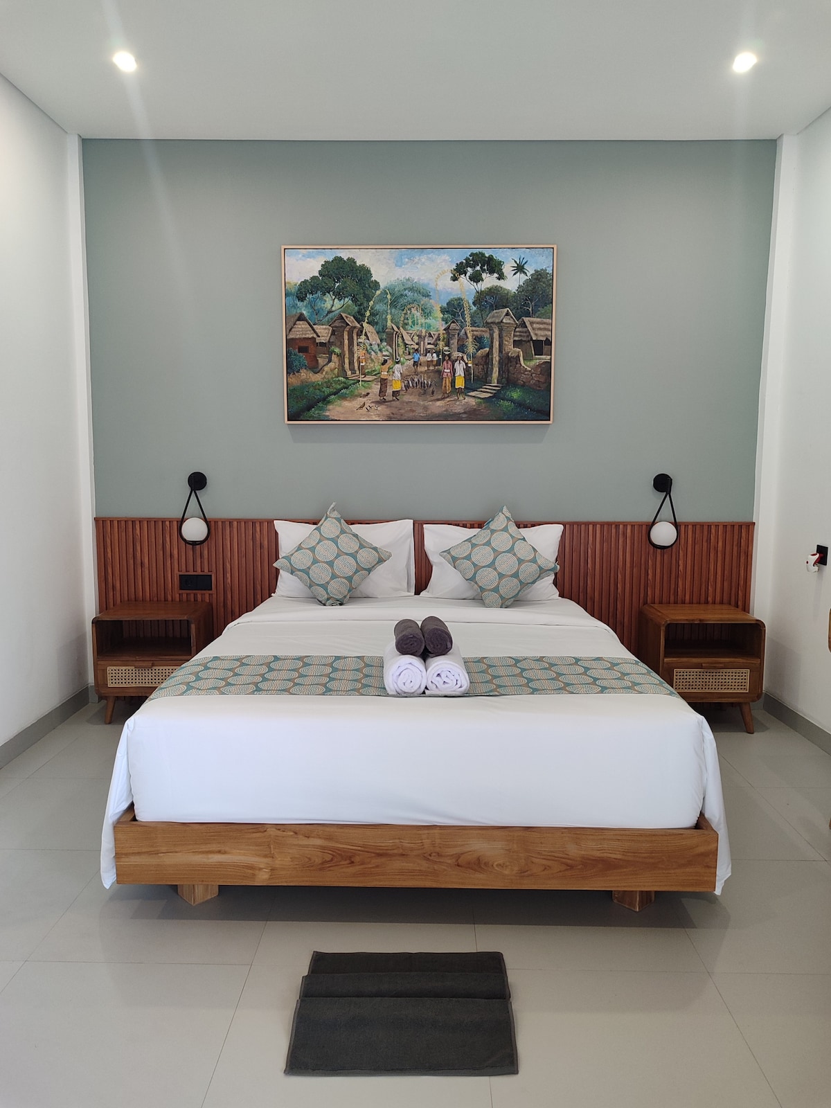 Dette er et familiedrevet hus med 2 soveværelser (1 øverste og 1 nederste etage). Hvert værelse har kingsize-seng, aircondition, wi-fi og badeværelse med badekar. Opholdsområdet omfatter en privat udendørs pool, køkken, køleskab og komfur. Huset ligger ca. 2 km fra Ubuds centrum, der er let tilgængeligt med bil/scooter. Og vi har også en parkeringsplads.