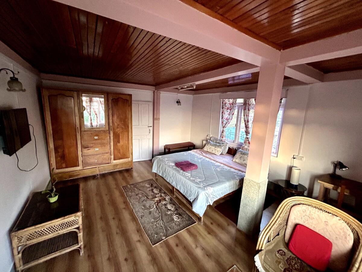 Vores villa ligger 5 km fra mg Marg omgivet af natur. Hvis du søger lidt fred og ro, så tøv ikke med at komme til Sherpa Villa og nyde den fuldt møblerede lejlighed i hytte stil med træ, der giver dig varmen og komforten af Gangtok sammen med en spektakulær udsigt over bjergkæden, der sjældent ses fra hoteller i MG Marg. Hvis du er eventyrlysten, så tag en snak med vores egen sherpa, Kazi, der har bestået to ekspeditioner til Everest. Han er meddirektør for turistafdelingen.