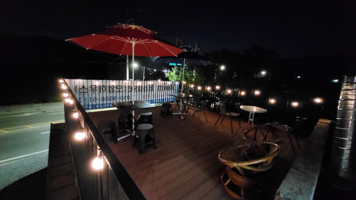 📌 Kun på Airbnb tilbyder vi gratis service til 26 personer efter først til mølle-princippet. ^^ 🏡Hej. Det her er Pension Ancy. Værtens kontaktnummer er OlO 3208 9709. Annecy er en turistdestination, der hedder "De franske alpernes perle". Jeg kaldte pensionatet imod dens skønhed. Kun et team er booket om dagen, og pensionatet Ancy kan prale af en smuk panoramaudsigt over floden, der ligger ved siden af Namhan-floden. Du kan nyde udsigten over Namhan-floden fra alle steder såsom stuer, soveværelser, terrasser, grillområder og køkkener på hver etage. (Især udsigten over Namhan-floden fra den rummelige terrasse på anden sal er så smuk. /Bålplads og vand på terrassen på anden sal er muligt, og solopgangen er smuk, fordi det er Jeongdonghyang.) ※ Det maksimale antal besøgende er 14, og op til 2 spædbørn under 24 måneder er gratis.(Ekstra sengetøj opkræves, når der anmodes om det/Hvis der er 3 eller flere babyer, opkræves der et ekstra gebyr på 20.000 KRW per person. Betaling på stedet)