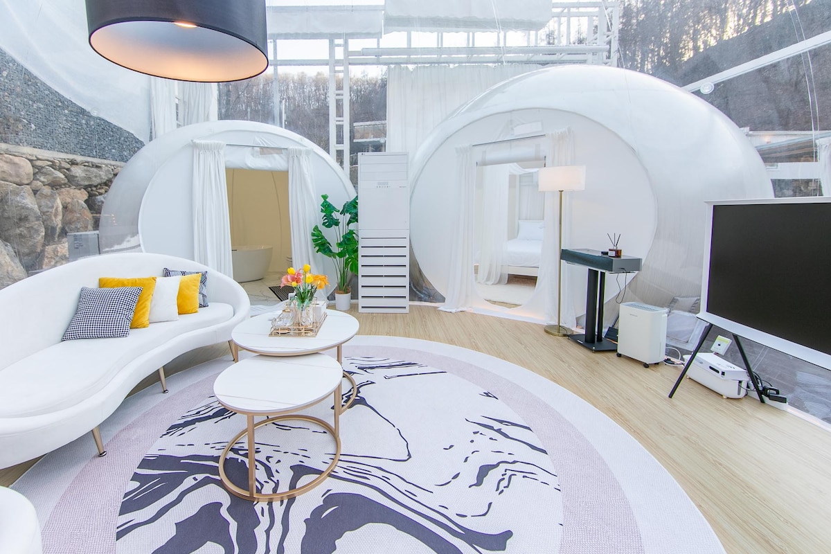 Rummeligt privat tilflugtssted beliggende i Gapyeongs fredfyldte natur, der tilbyder de perfekte omgivelser til uforglemmelige øjeblikke. Du vågner til varmt sollys og slutter dagen under en himmel, der er fyldt med stjerner. Med over 165 kvadratmeter indendørs plads og over 1.300 kvadratmeter udendørs er det perfekt til familieudflugter, sammenkomster med venner og workshops. Gennemtænkt designede faciliteter og varm gæstfrihed venter, hvilket gør din tid med kære endnu mere meningsfuld og behagelig.