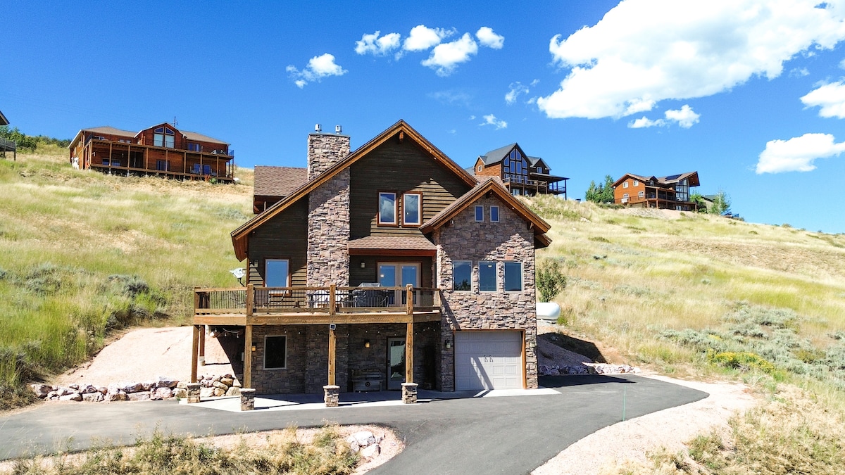 Vores fantastiske bjælkehus i Harbour Village tilbyder panoramaudsigt over Bear Lake og 16+ sovepladser i 4 soveværelser, 3 badeværelser. Et valgfrit gæstehus med plads til 8 personer kan bookes separat eller sammen. Hovedhuset har et stort spilrum med salgsautomater, arkadespil, poolbord, bordtennis og airhockey. Nyd det private boblebad og bålplads i baghaven. Tæt på marinaen, købmanden og ATV-stier er dette det perfekte tilflugtssted til familiesjov!