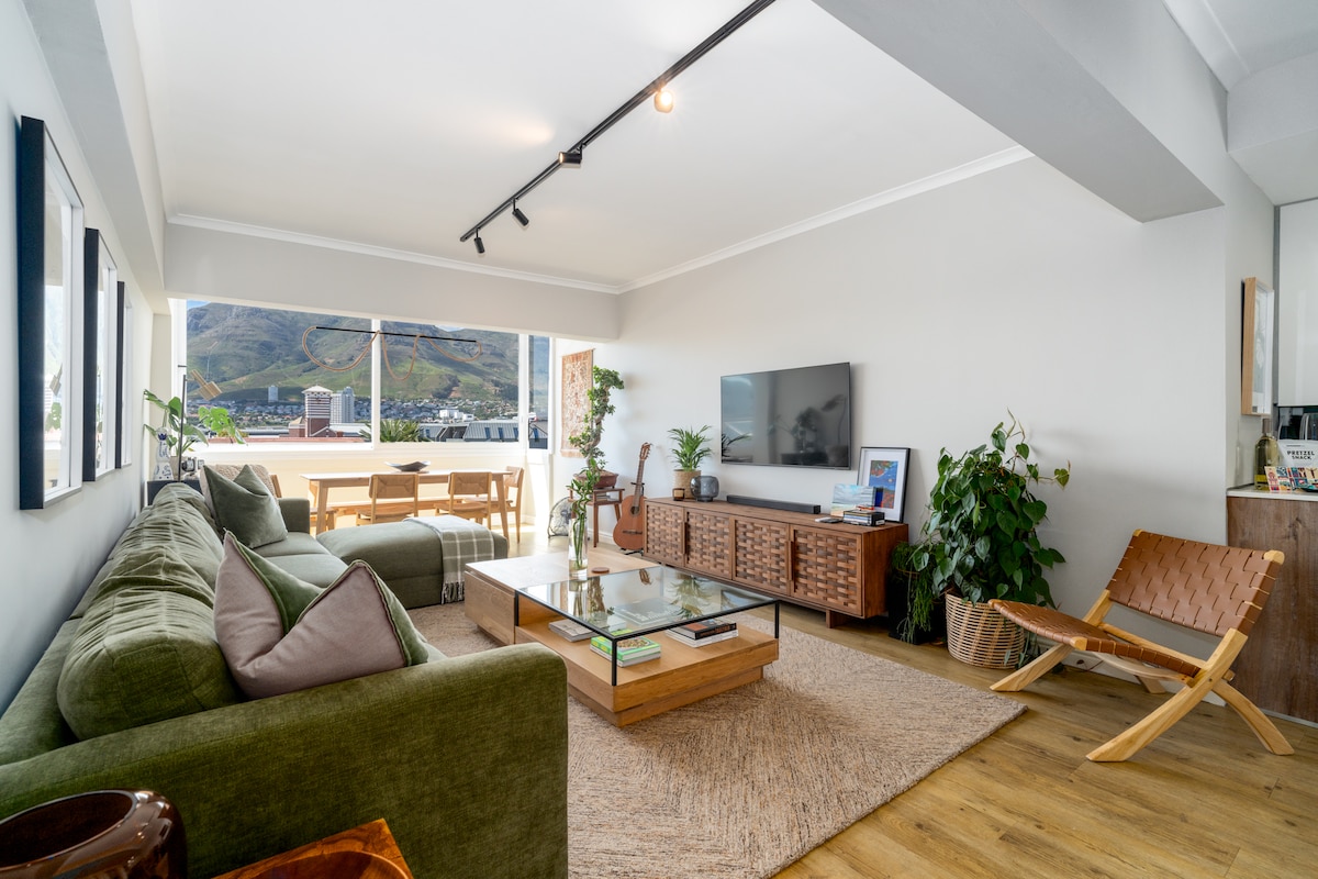 DEN BEDSTE UDSIGT - midt i Cape Towns CBD. The Lookout er en uberørt 62 kvm, 1,5 soveværelses lejlighed på øverste etage i hjertet af Cape Towns CBD, med den sjældne firedobbelte udsigt - nyd uafbrudt udsigt over hele byens skål, Table Mountain, Lion's Head og Harbour Bay. Alt kun inden for 500 meters gangafstand til byens centrum. The Lookout er smagfuldt indrettet med topmoderne, uberørt finish og fyldt med kunst og grønne områder, og tilbyder dig en unik oplevelse i Cape Town, du ikke vil glemme.