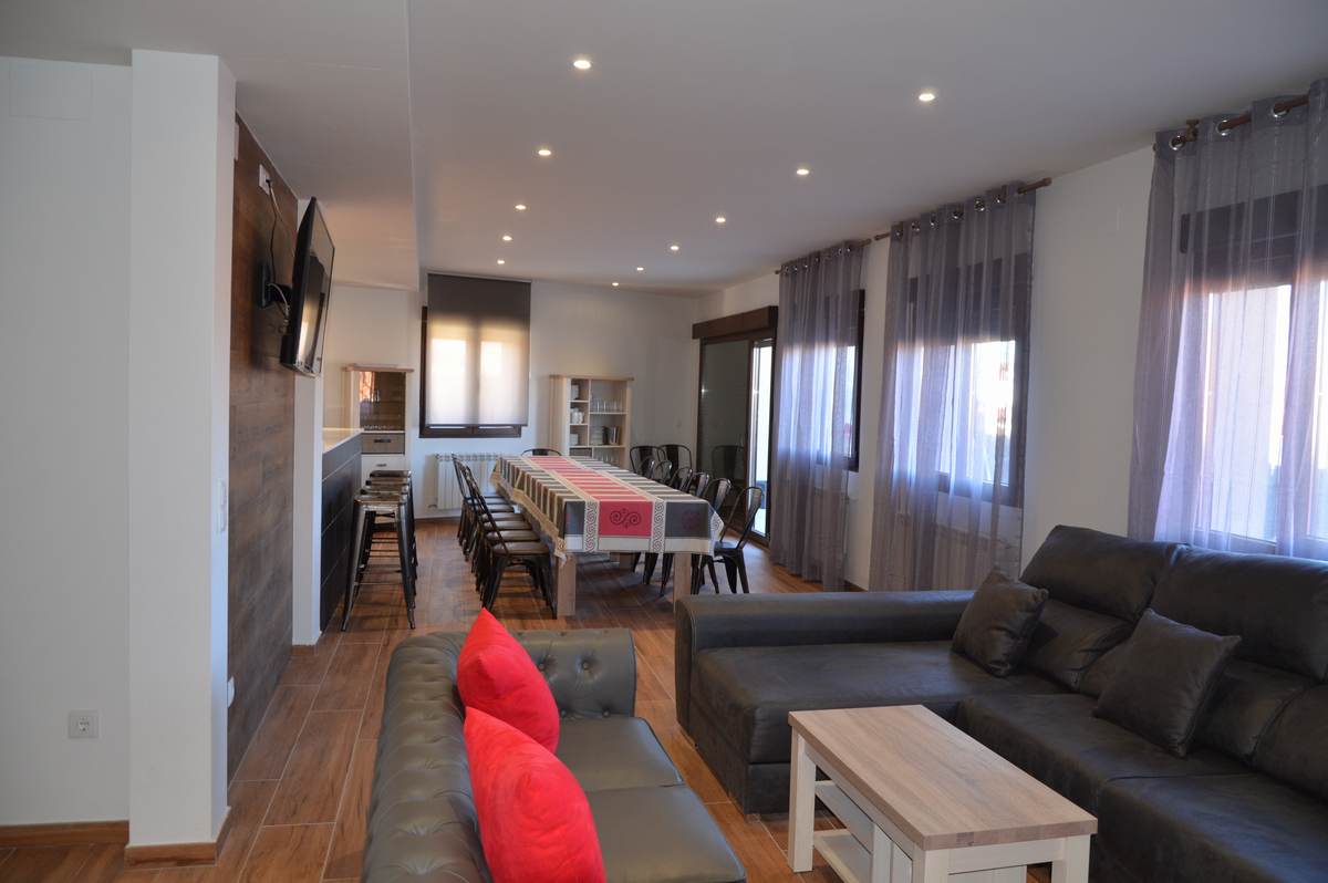 VI HAR ET NYT STORT KØKKEN ved siden af haven, verandaen og grillen. COVA ligger i Caballar i Segovia. Fuldt renoveret. Den har 5 soveværelser, 2 store udstyrede køkkener, en terrasse, en have med veranda, 2 separate stuer, 3 badeværelser, et toilet og wi-fi-forbindelse. Det ligger 5 km fra Turégano. Og også meget tæt på steder som Hoces del Duratón, La Granja, Pedraza, Valsaín og Segovia Capital. Kapacitet i henhold til gældende epidemiologiske regler. Registreringsnummer C.R.-40/720