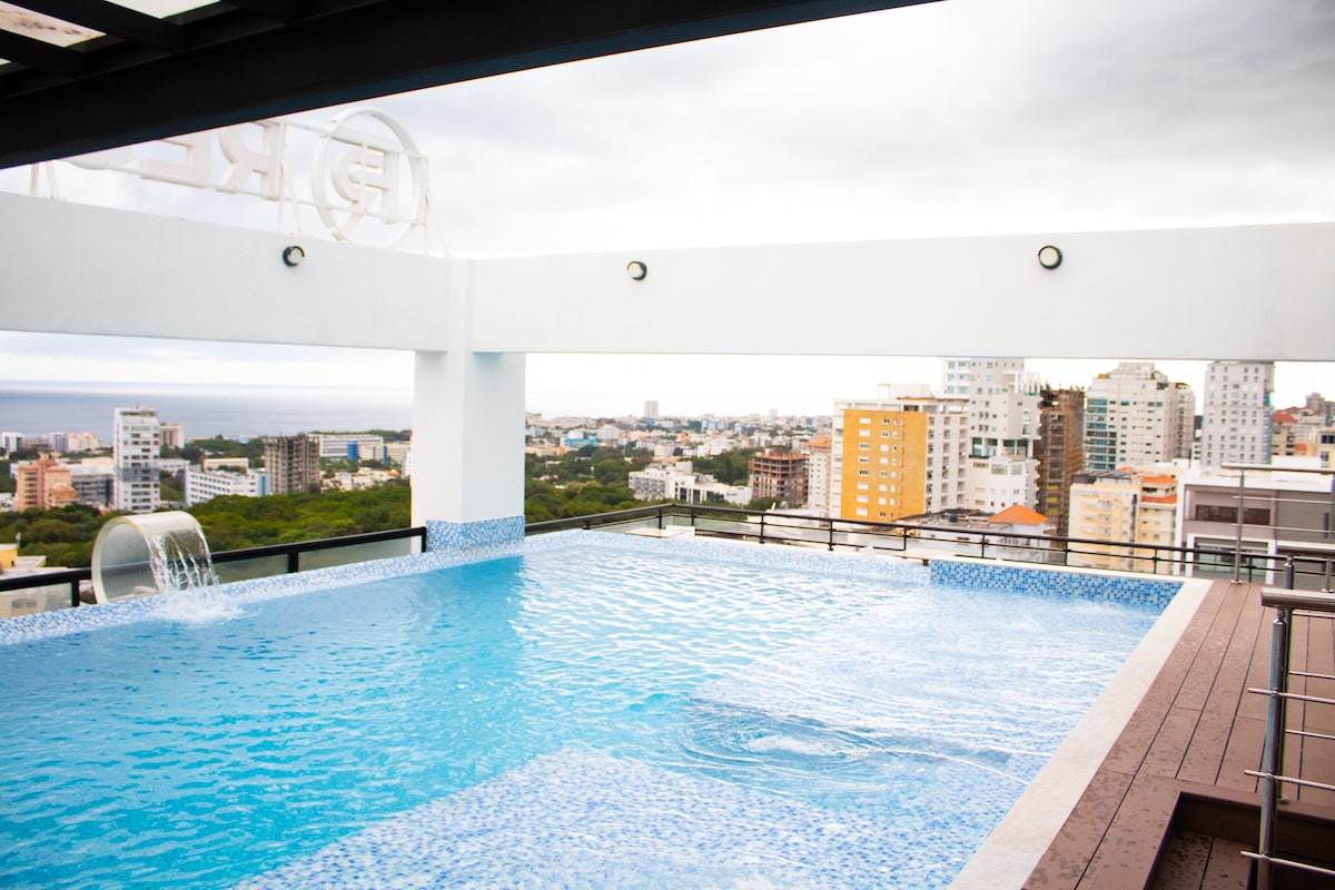 Penthouse med 1 soveværelse i Gazcue + tagterrasse med pool + fitnessrum